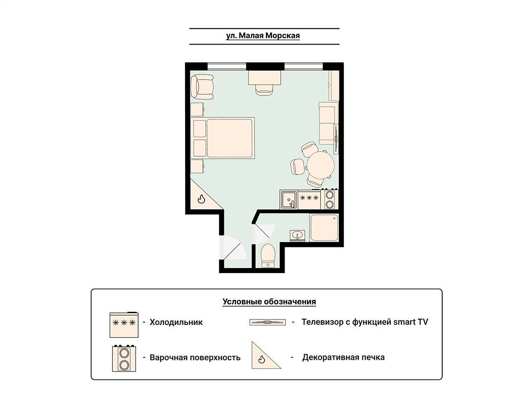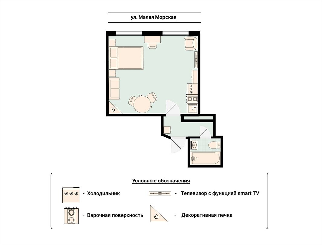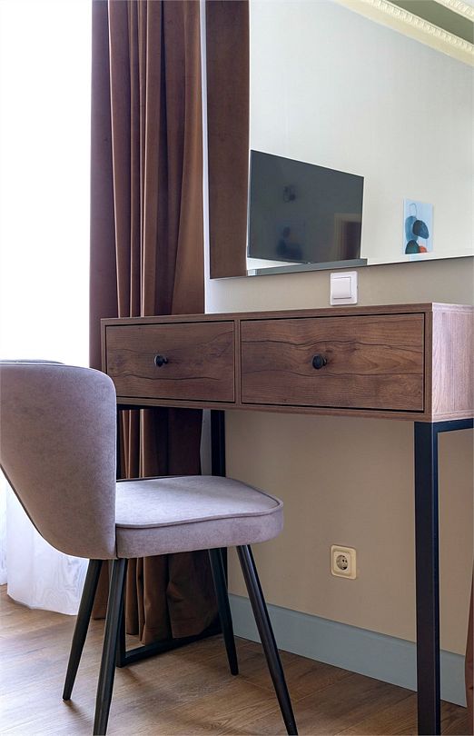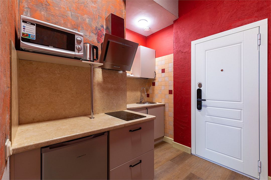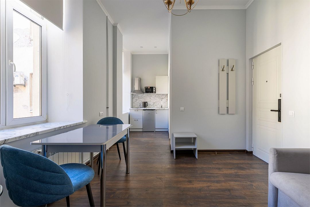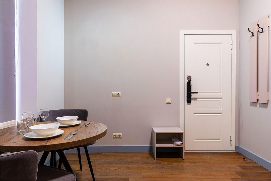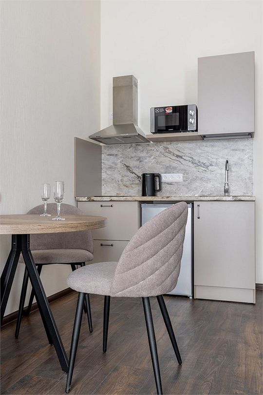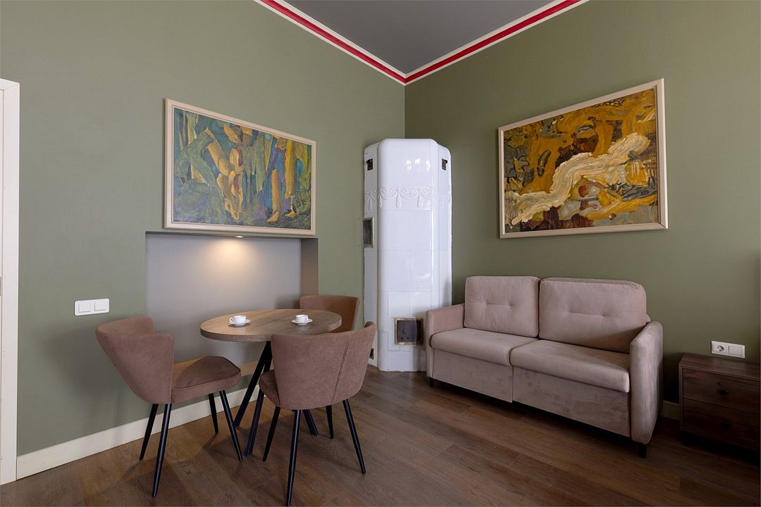 Wi-Fi, интернет, фен, вентилятор, электронные замки, плита для приготовления пищи, микроволновая печь, утюг, банные принадлежности, тапочки, кровать «King size», тумбы, стулья, шкаф для одежды, вешалки, обеденный стол, зеркало, звуконепроницаемые стены и окна, чайный набор, информационная карта, меню, сейф, чайник, раковина, отопление, отдельный вход в номер, душ, вид на город, ламинат, высокие потолки, кухонная посуда, стаканы, столовые приборы, туалетные средства, туалет, диван-кровать, раскладной диван, раскладное кресло, телевизор с плоским экраном, мини-холодильник, мини-кухня, телевизор со Smart TV, номер для некурящих, рабочий стол, кресло-кровать, фумигатор, можно с питомцамиВ гостиничном номере