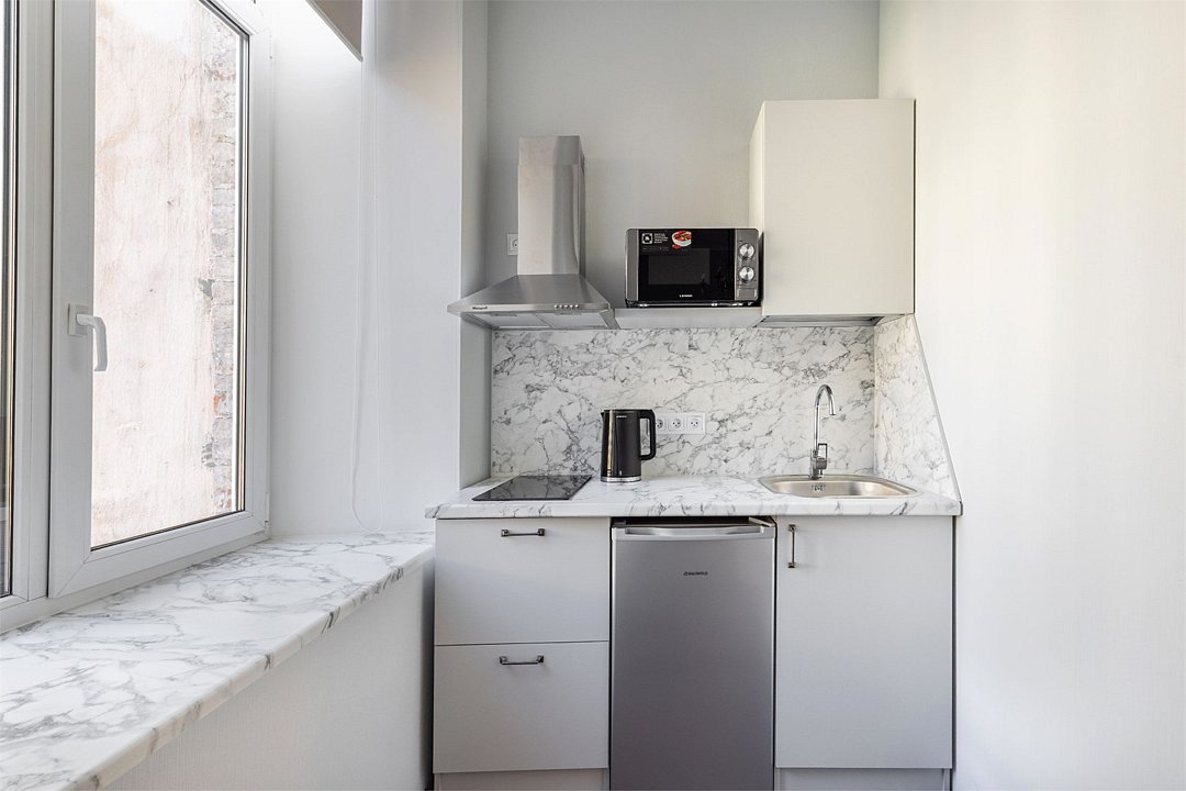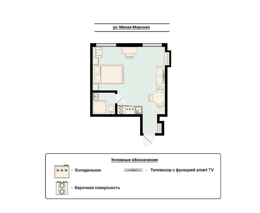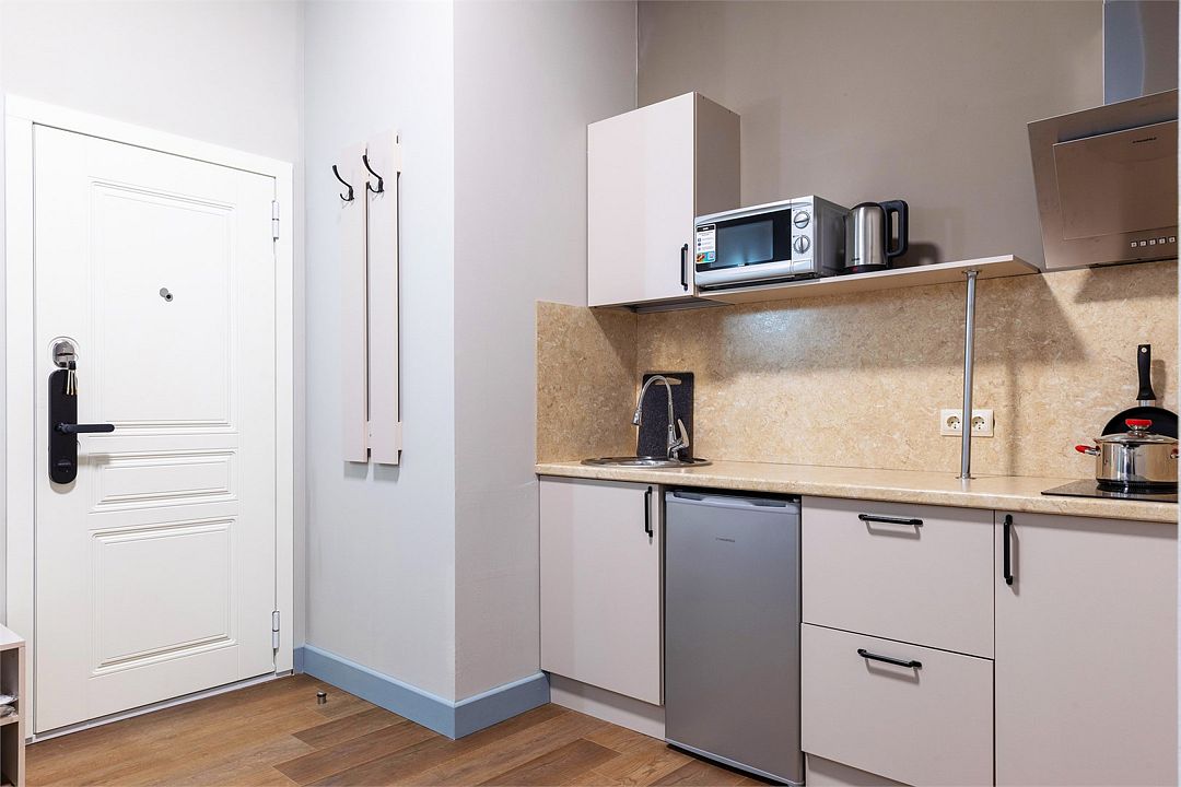 Залог при заезде 5.000 р , отдается при выезде. Просим обратить внимание - заезд в апартаменты с 15:00. Новые апартаменты для комфортного проживания семьи до 3 человек. Cпальня: кровать "King size" 180 см; кресло 100см; TV, 43 диаг; вид в тихий уютный дворик, два окна, широкие подоконники; стол письменный; шкаф. Техника: вентилятор, микроволновая печь; электрическая плита; чайник; холодильник; стиральная машина; посуда. Ванная комната, сан.узел , душевая кабина; полотенца; гели, шампуни, мыло, тапочки; фен. Во время проживания в апартаментах Вы можете заказать текущую уборку , стоимость уборки 1000р. Подробная информация у Администратора. *Курение строго запрещено!Услуги и удобства