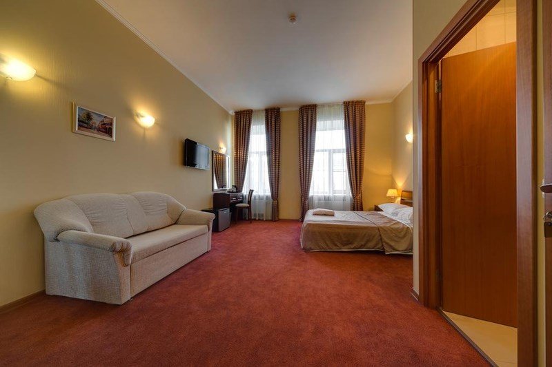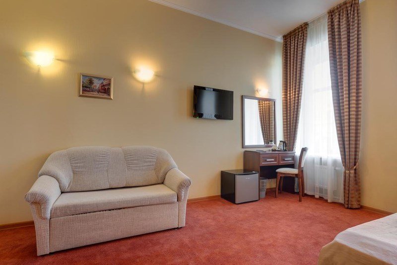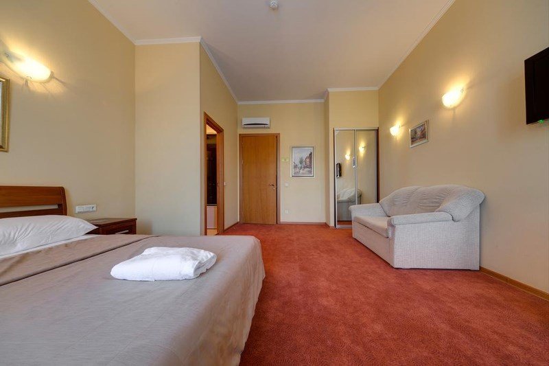 телевизор, кабельное телевидение, Wi-Fi, интернет, телефон, кондиционер, фен, банные принадлежности, банные полотенца, тапочки, косметические средства, кровать «King size», стулья, вешалки, зеркало, чайный набор, сейф, чайник, раковина, ковровое покрытие, душ, вид на город, кулер на этаже, туалетные средства, туалет, диван-кровать, раскладной диван, мини-холодильник, шкаф-купе, номер для некурящих, рабочий стол, антибактериальное средство для рук, можно с питомцамиВ номере
