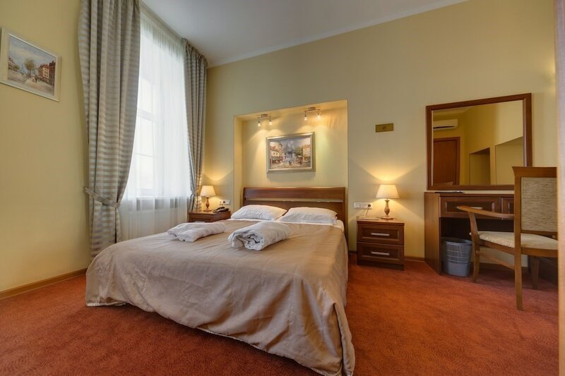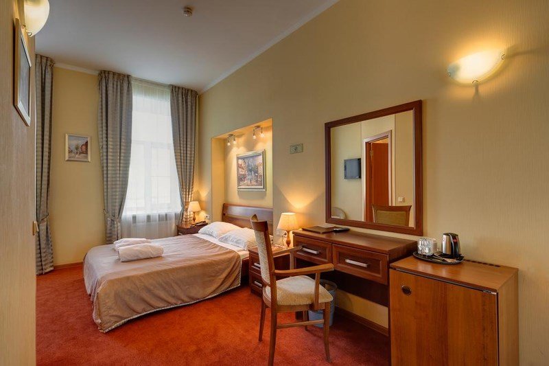 телевизор, кабельное телевидение, Wi-Fi, интернет, телефон, кондиционер, фен, вентилятор, душевая кабина, санузел, банные принадлежности, банные полотенца, тапочки, двуспальная кровать, тумбы, вешалки, зеркало, чайный набор, сейф, чайник, унитаз, ковровое покрытие, отопление, вид на город, кулер на этаже, вид во двор, стул, туалетные средства, туалет, мини-холодильник, шкаф-купе, номер для некурящих, рабочий стол, можно с питомцамиВ номере