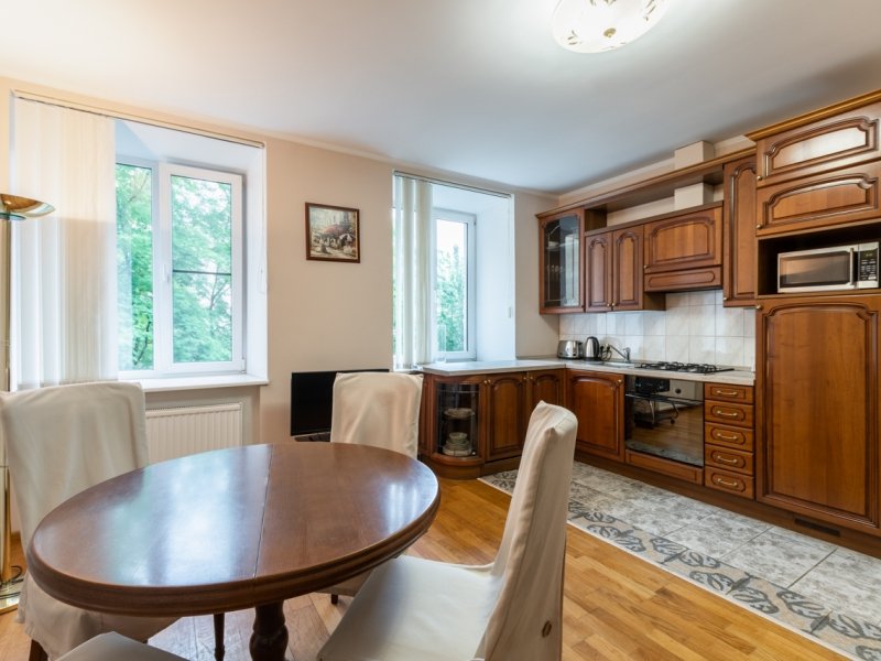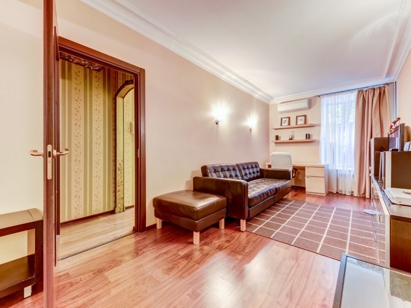 Улучшенные трёхкомнатные апартаменты расположены по адресу Малая Конюшенная улица д. 10. Квартира расположена в исторической части города на пешеходной улице. В данной квартире две просторные спальни, гостиная, совмещенная с кухней, просторная ванная комната с джакузи и санузлом. Кухня оборудована всей необходимой техникой, есть тостер, кофеварка, посудомоечная машина, вся посуда для приготовления еды. Окна выходят на Малую Конюшенную улицу и во двор. На Малой Конюшенной улице расположены: памятник Гоголю, Немецкая евангелическо-лютеранская церковь святых Петра и Павла, Павильон погоды, Шведская лютеранско-евангелическая церковь святой Екатерины. В пешей доступности находятся основные достопримечательности города Санкт-Петербурга, а также кафе, рестораны и продуктовые магазины.В гостиничном номере