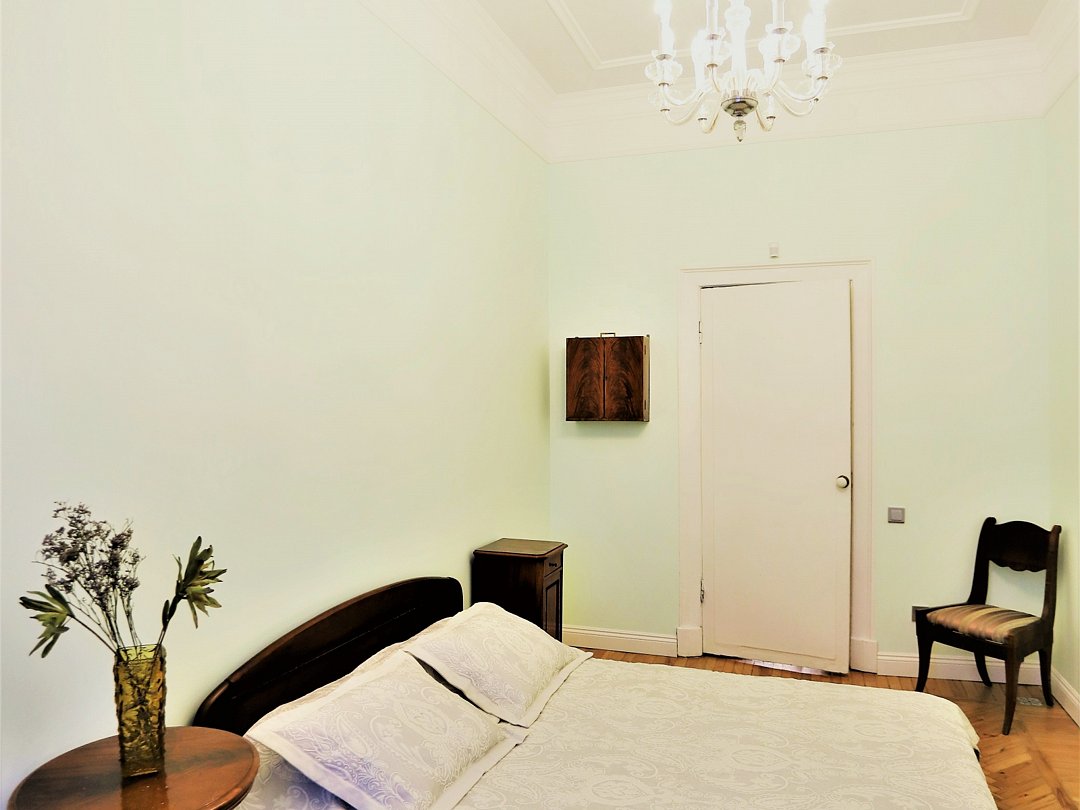 Квартира находится на Малой Садовой улице 3, вблизи самых известных достопримечательностей в центре Санкт-Петербурга. Окна квартиры выходят в тихий двор. Размещение предоставляется для 4-х гостей, из спальных мест: двуспальная кровать и диван. Ванная комната с су- совмещены. На кухне Вы можете использовать всю имеющуюся бытовую технику и посуду, имеется чай, кофе, сахар. Банными принадлежностями укомплектовывается квартира в соответствии с проживающим составом гостей. Феном, гладильной доской, утюгом также можно воспользоваться.В гостиничном номере