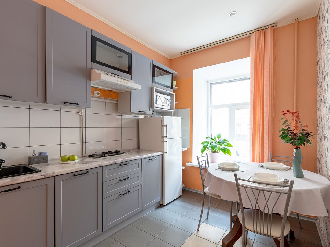 Квартира находится на Поварском переулке дом 10, вблизи Московского вокзала и всех достопримечательностей в центре Санкт-Петербурга. Окна квартиры выходят в тихий двор, поэтому шум не будет доноситься. Размещение предоставляется для 4-ых гостей, из спальных мест: двуспальная кровать и диван раскладывающийся. Ванная комната с су- совмещённые, есть прачечная комната и кухня. На кухне Вы можете использовать всю имеющуюся бытовую технику и посуду, имеется чай, кофе, сахар, бутилированная вода. Банными принадлежностями укомплектовывается квартира в соответствии с проживающим составом гостей. Феном, гладильной доской, утюгом также можно воспользоваться.В гостиничном номере