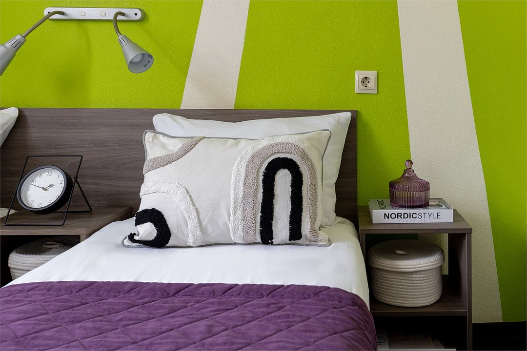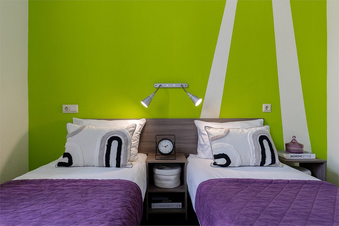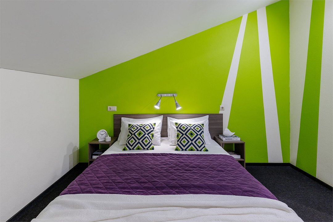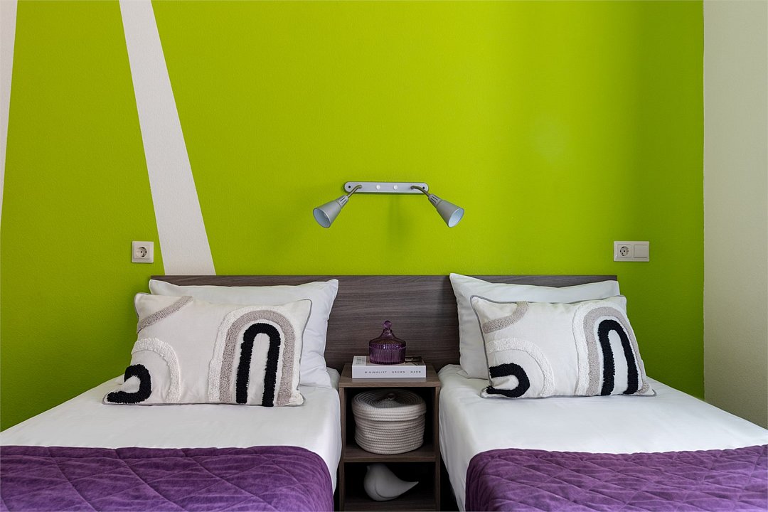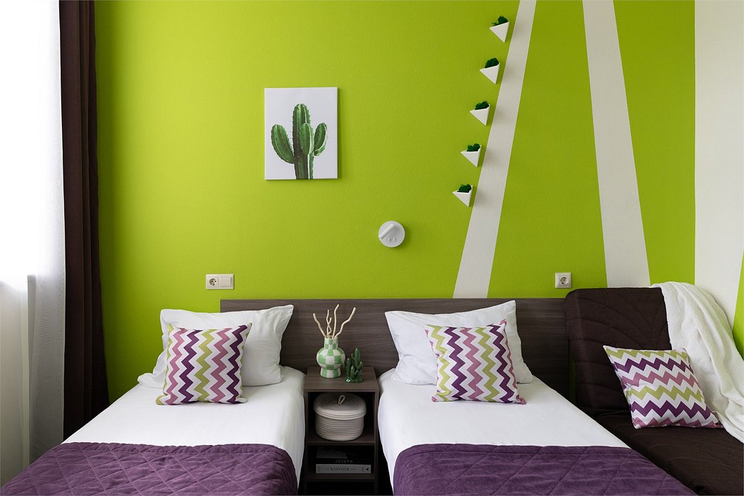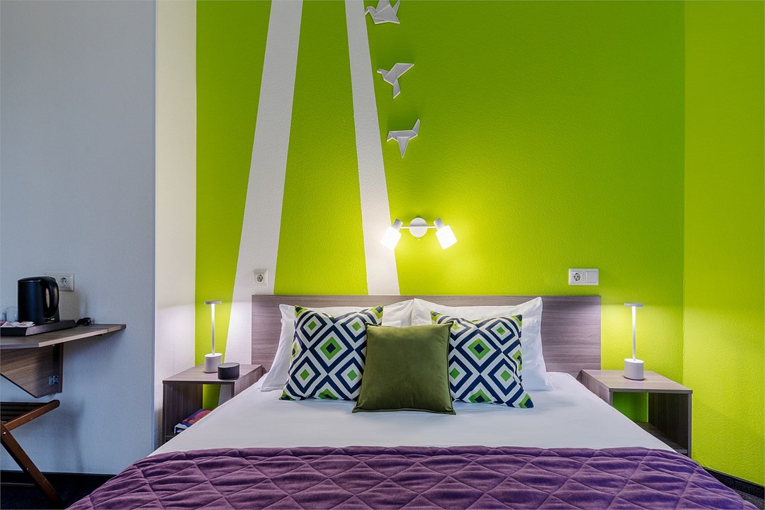 Современные номера оформлены в фирменных ярких тонах. В каждом номере есть плоский телевизор со спутниковыми каналами, собственная ванная комната с душем и бесплатными туалетно-косметическими принадлежностями. Отель оборудован центральной системой кондиционирования и отопления, на всей территории отеля работает высокоскоростной бесплатный Wi-Fi