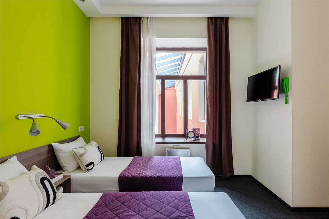 Откройте для себя комфорт уютных гостиничных номеров! Выбирайте лучшее сочетание цены и качества. Стандарт - небольшой современный номер общей площадью 14-15 кв. м. и окном во внутренний двор отеля, на улицу Некрасова или на Лиговский проспект. Номер оснащен всем необходимым для комфортного размещения: кондиционером, телевизором с плоским экраном, бесплатным Wi-Fi и современной мебелью. При бронировании вы можете выбрать две односпальные или одну двуспальную кровать. Доступен круглосуточный электронный консьерж. В собственной ванной комнате с душем вы найдете фен, набор полотенец и косметические принадлежности. Обратите внимание: в данном номере нет возможности для дополнительного местаУслуги и удобства