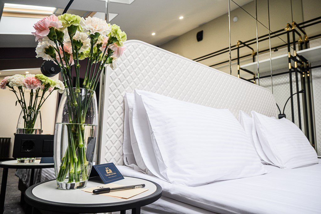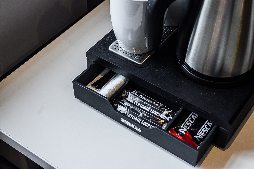 Wi-Fi, IP-телефон, кондиционер, светильник, фен, электронные замки, утюг, банные полотенца, тапочки, гигиенические средства, косметические средства, кровать «King size», гипоаллергенное белье, гладильная доска, ортопедический матрас, тумбы, шкаф для одежды, вешалки, письменный стол, багажная тумба, зеркало, эксклюзивная мебель, мебельный гарнитур, чайный набор, минеральная вода, раковина, ковровое покрытие, отопление, душ, вид на город, центральное кондиционирование, вид во двор, высокие потолки, стаканы, стул, туалетные средства, туалет, цифровое тв, телевизор с плоским экраном, мини-холодильник, телевизор со Smart TV, номер для некурящихВ номере