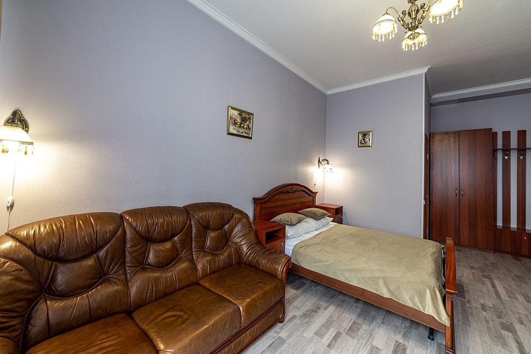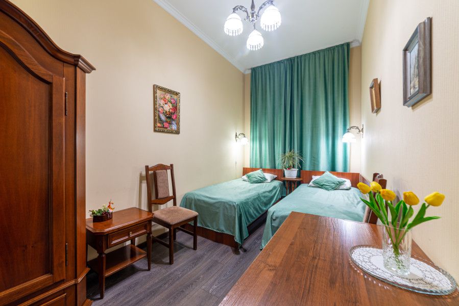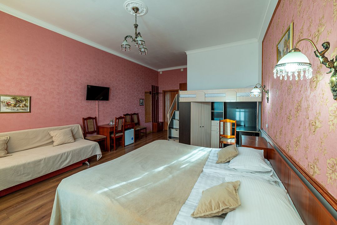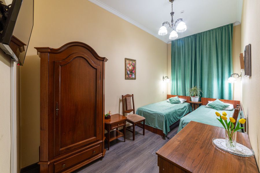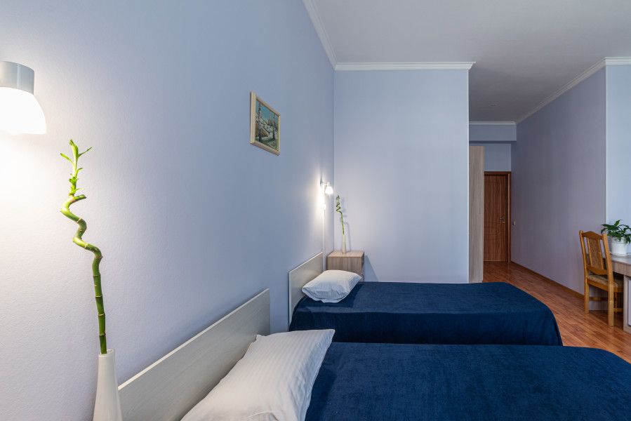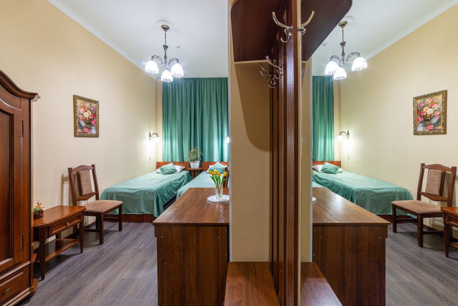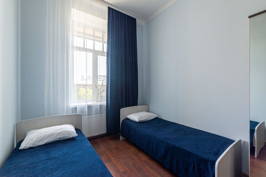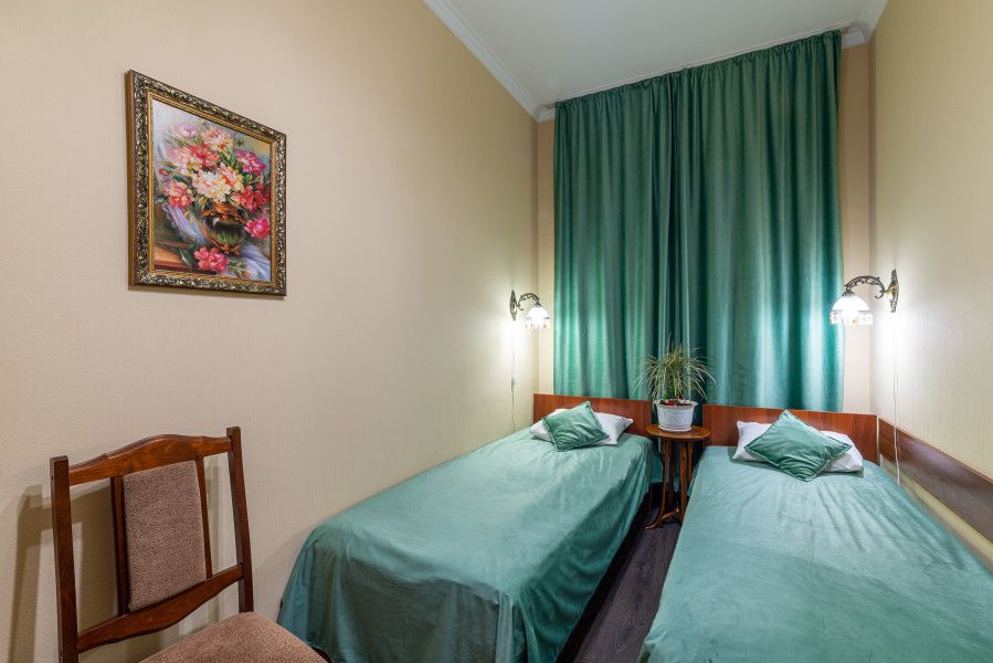 Номера оформлен в светлых тонах. Из окон открывается на улицу Некрасова и соседний дом. Номер оснащены 2 односпальными кроватями и диваном двуспальным, письменным столом, телевизором, мини-холодильником. В номере есть только туалет и умывальник. Общие душевые комнаты расположены рядом с номерам на этаже. Гостям предоставляются тапки, туалетные принадлежности, полотенца, фен, утюг и гладильная доска. Во всех номерах доступен беспроводной интернет Wi-fi.