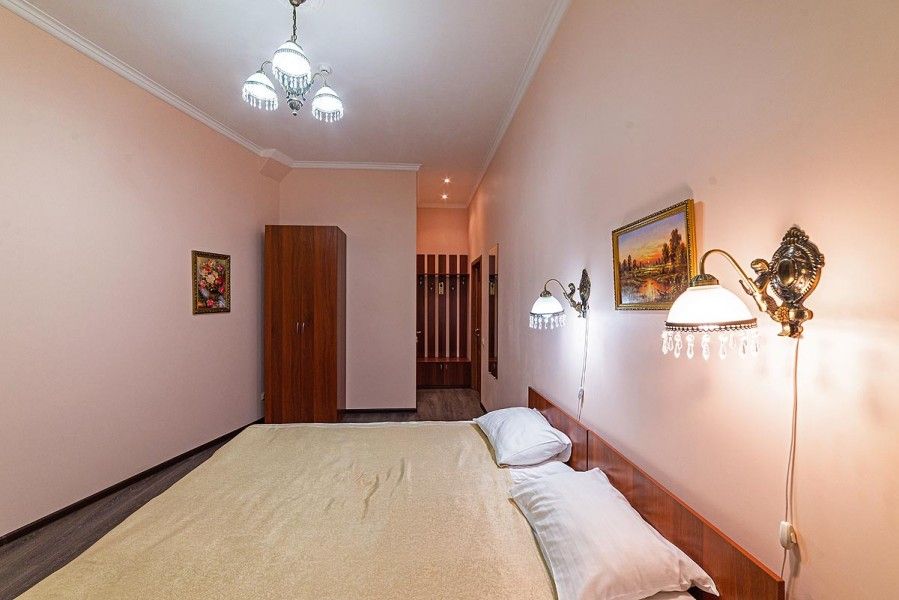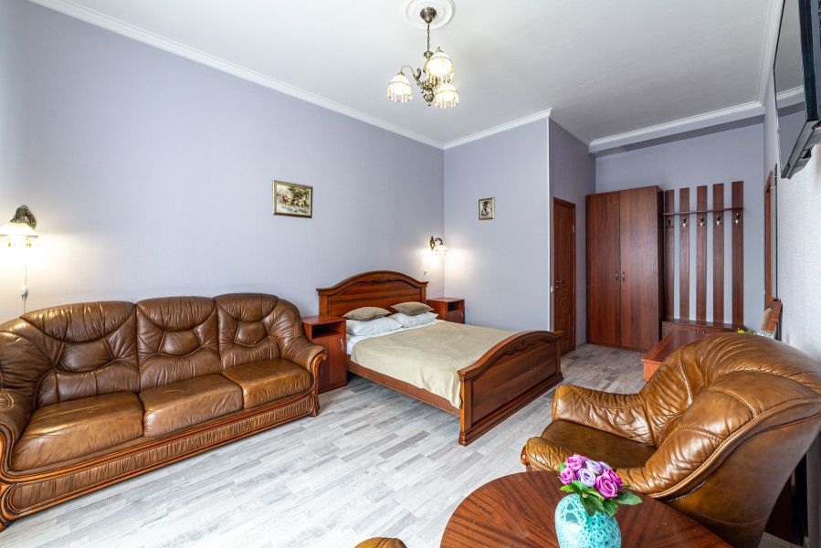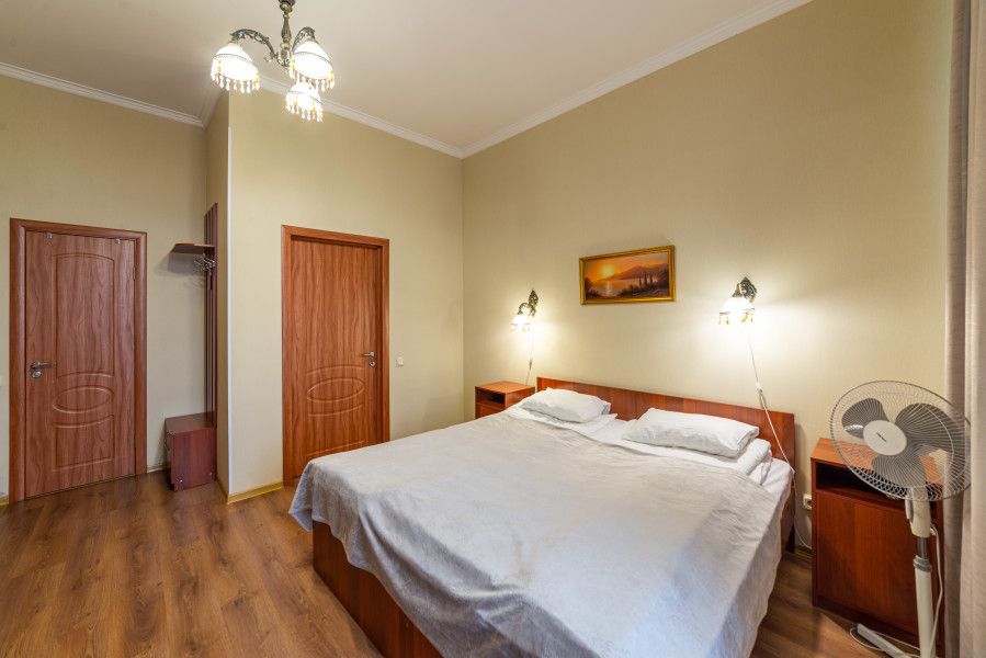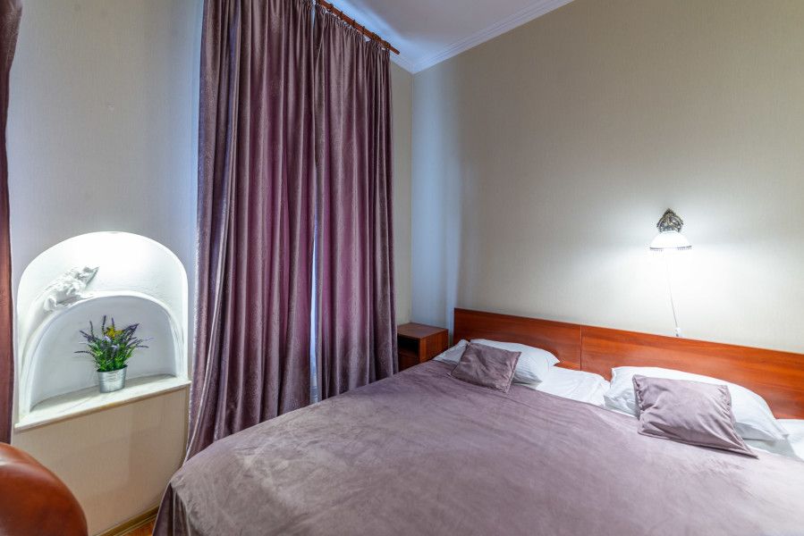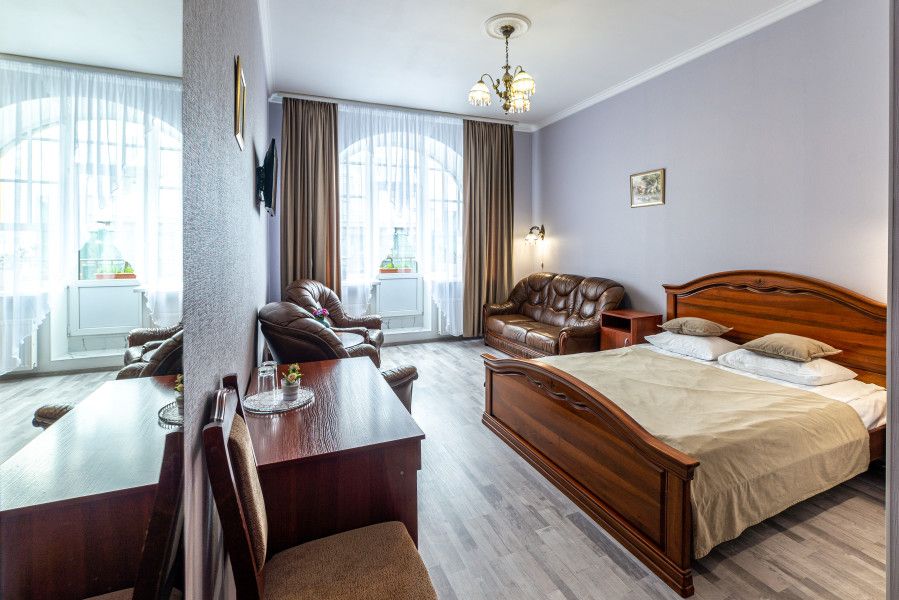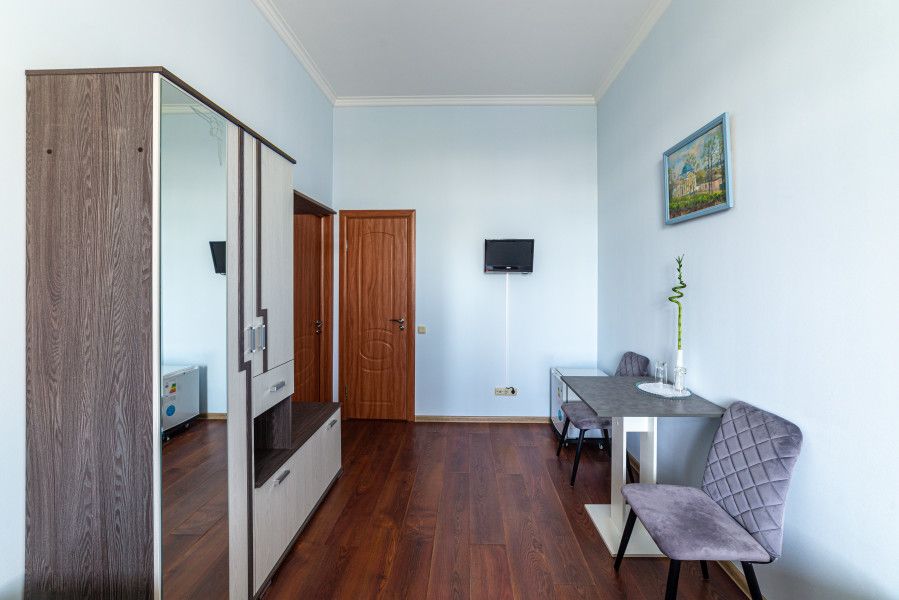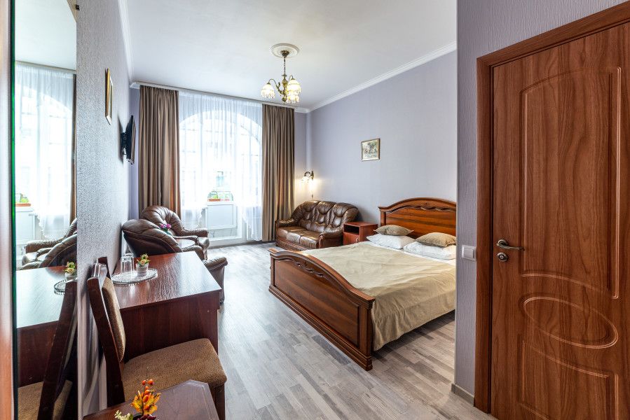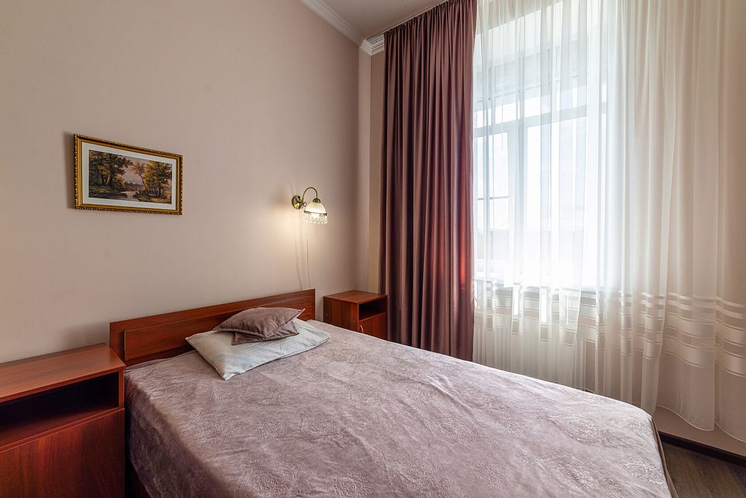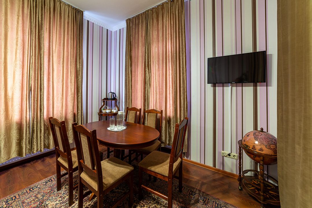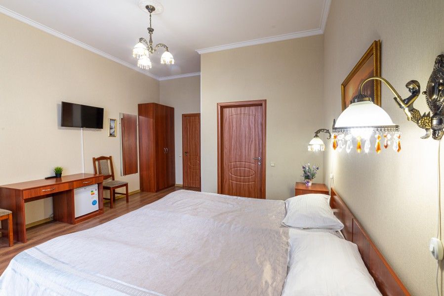Номер оформлены в светлых тонах, из окон открывается вид на ул. Некрасова и на соседний исторический дом. Номер оснащен двуспальной кроватью, телевизором, мини-холодильником, письменным столом, прикроватными тумбами. В номере собственный санузел: душ, умывальник и унитаз. Гостям предоставляются полотенца, тапки, фен и туалетные принадлежности. Во всех номерах доступен беспроводной интернет Wi-fi. Общие удобства: Кухня, утюг и гладильная доска, стиральная машинка.