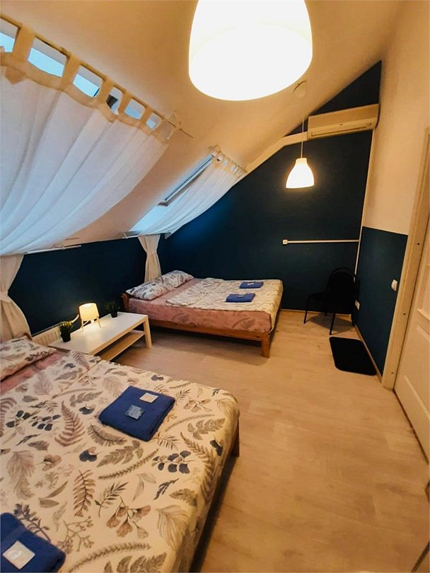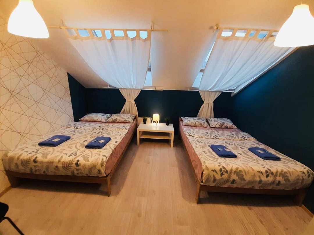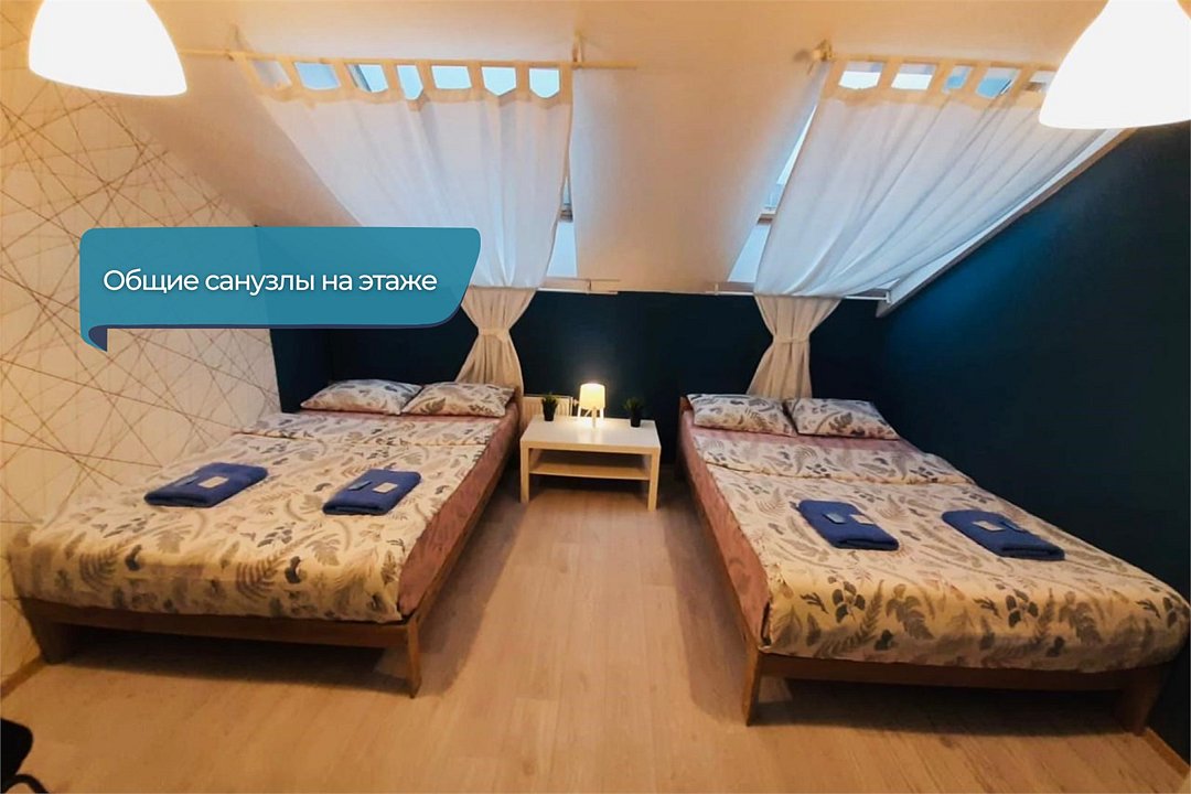 2 минуты от Эрмитажа❗️ Светлый семейный номер с двумя двуспальными кроватями, кофейным столиком, креслом, модульной секцией для одежды. В номере два мансардных окна. Возможно размещение 2 доп. мест. В отеле общие ванные комнаты с санузлами и просторная кухонная зона со всей необходимой посудой и техникой.Услуги и удобства