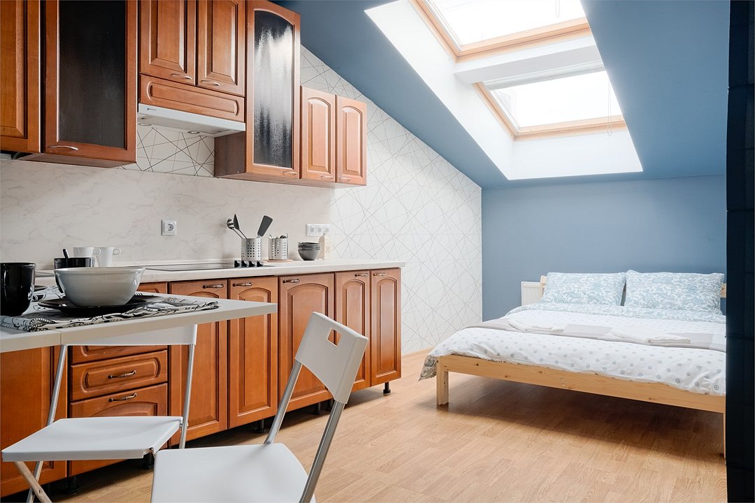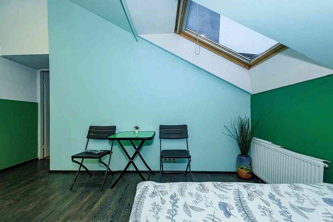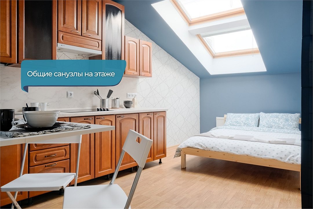 2 минуты от Эрмитажа❗️ В номере есть плита, посуда, чайник. Большие атмосферные мансардные окна, удобная кровать, кофейный стол со стульями. В отеле общие ванные комнаты с санузлами и просторная кухонная зона со всей необходимой техникой и инвентарем.Услуги и удобства