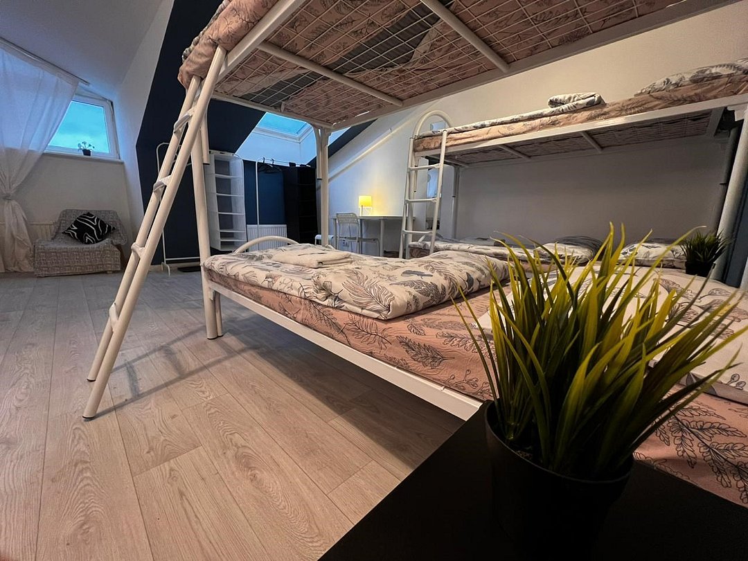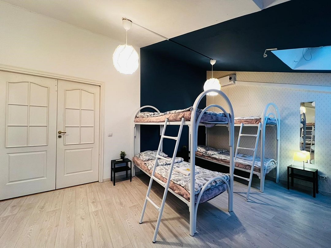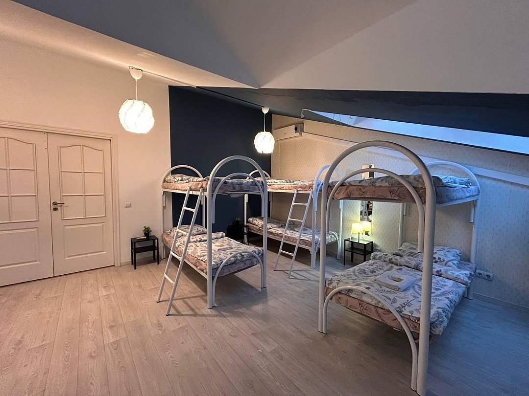 2 минуты от Эрмитажа❗️ Просторный женский 10-местный номер с двухъярусными кроватями и красивым видом на крыши города. Большое окно с видом на крыши города, удобные кровати, кофейный и письменный стол. В отеле общие ванные комнаты с санузлами и просторная кухонная зона со всей необходимой техникой и инвентарем.Услуги и удобства