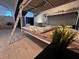 Wi-Fi, кондиционер, светильник, настольные лампы, плита для приготовления пищи, обогреватель, банные полотенца, двуспальная кровать, стулья, обеденный стол, зеркало, кухня, набор посуды, чайник, общая ванная комната, кухонная утварь, столовые приборы, тумба, туалетные средства, санузел на этаже, мансардные окнаВ номере