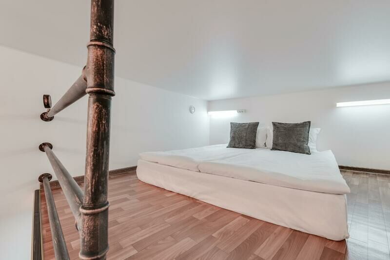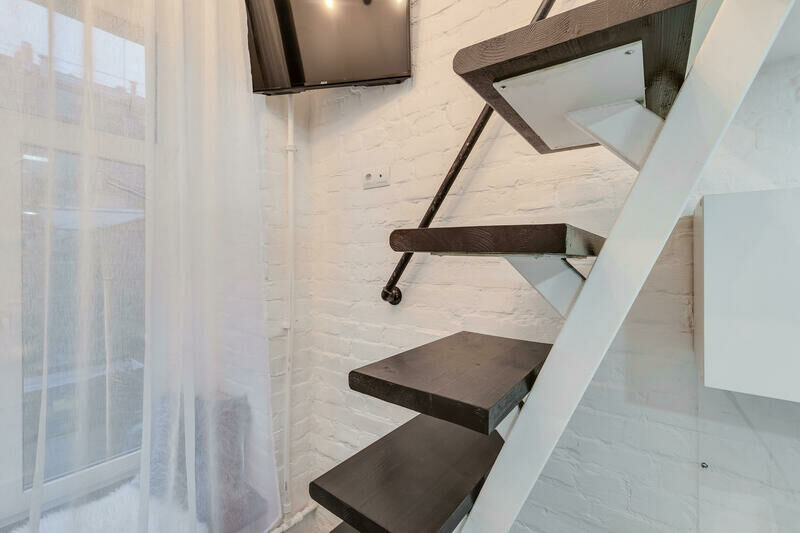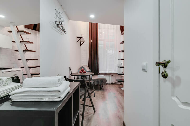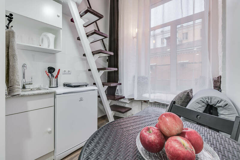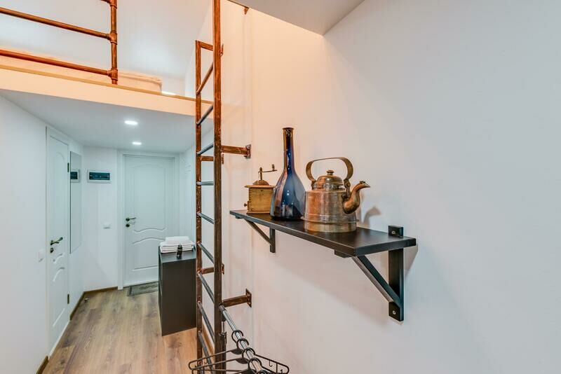 Отель находится в 7-ми этажном здании, расположенном на пересечении Московского проспекта и улицы Бринько. Гостей ожидают 2-х уровневые номера со светлыми интерьерами, в которых присутствуют элементы актуального стиля стим-панк. Все комнаты оснащены мини-кухней, индивидуальным санузлом с душем, везде есть плазменный телевизор, фен, холодильник, а на втором уровне расположены спальные места.
