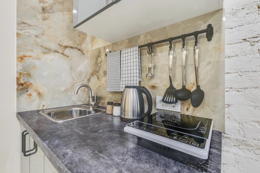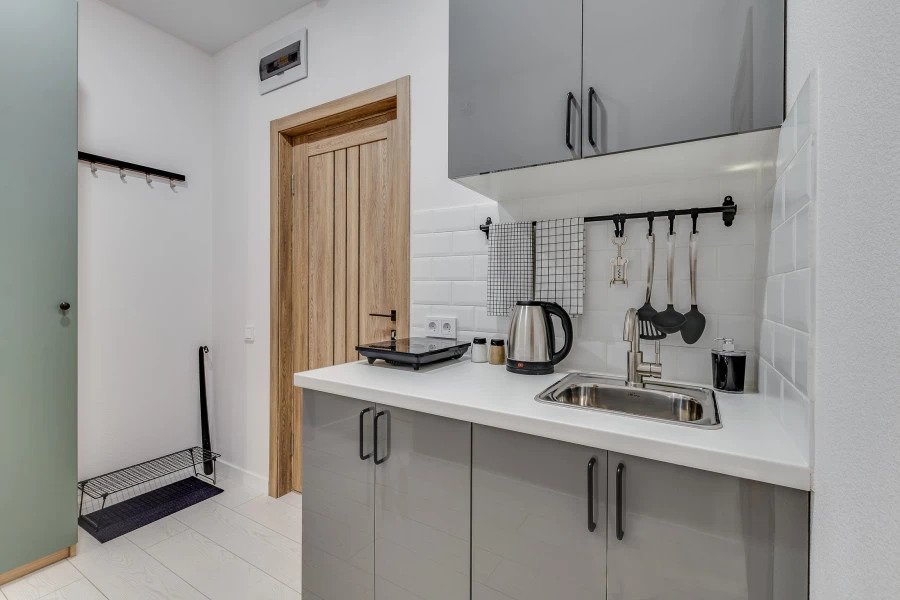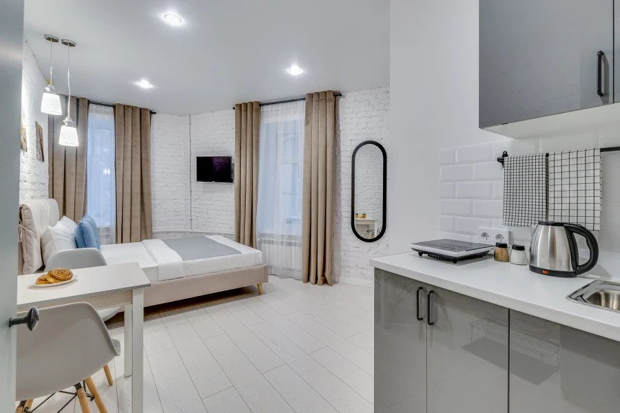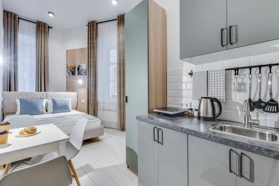 Апартаменты оснащены необходимыми предметами для краткосрочного проживания и самостоятельного приготовления пищи. В апартаментах имеются мини-кухни с посудой, фен, тапочки, шампунь и бальзам для волос.
