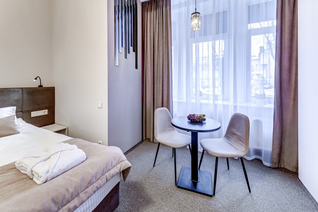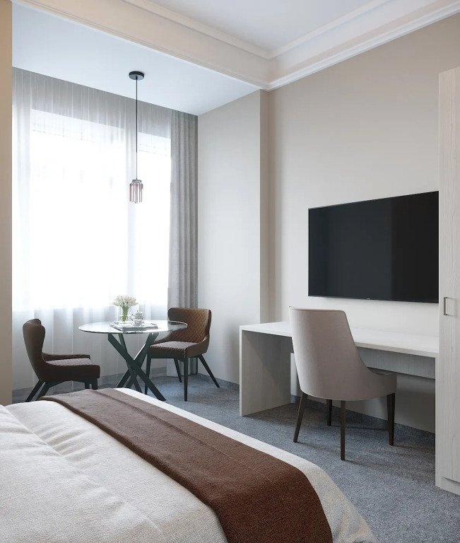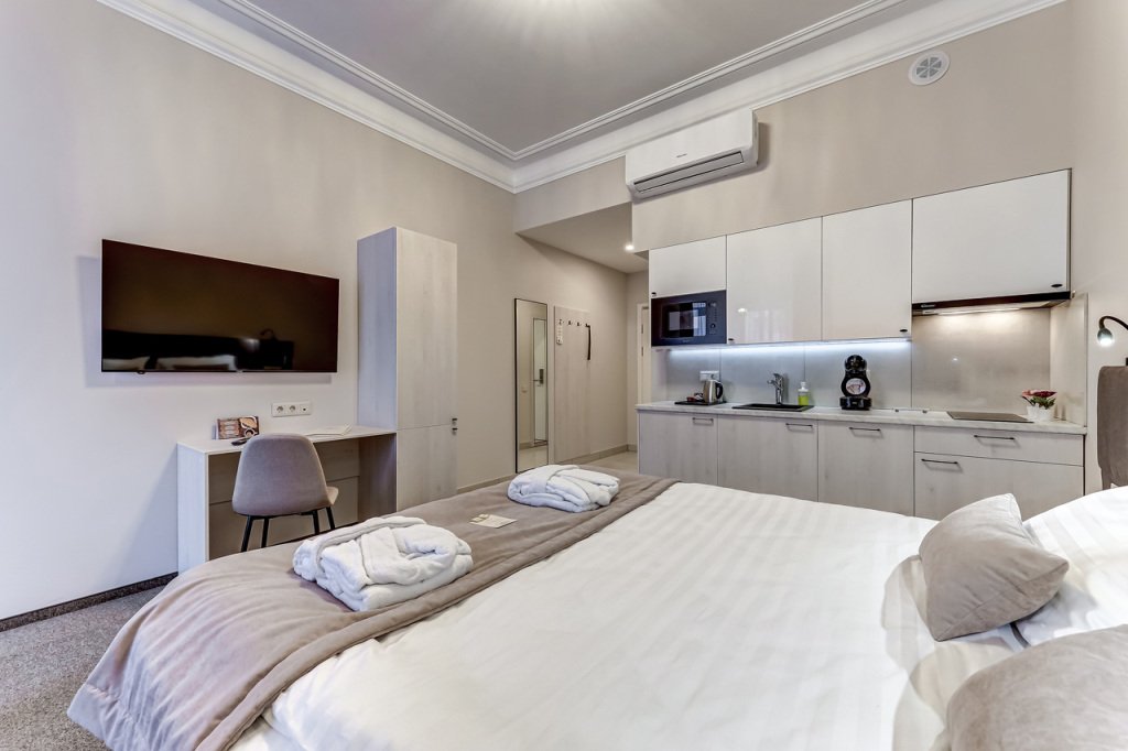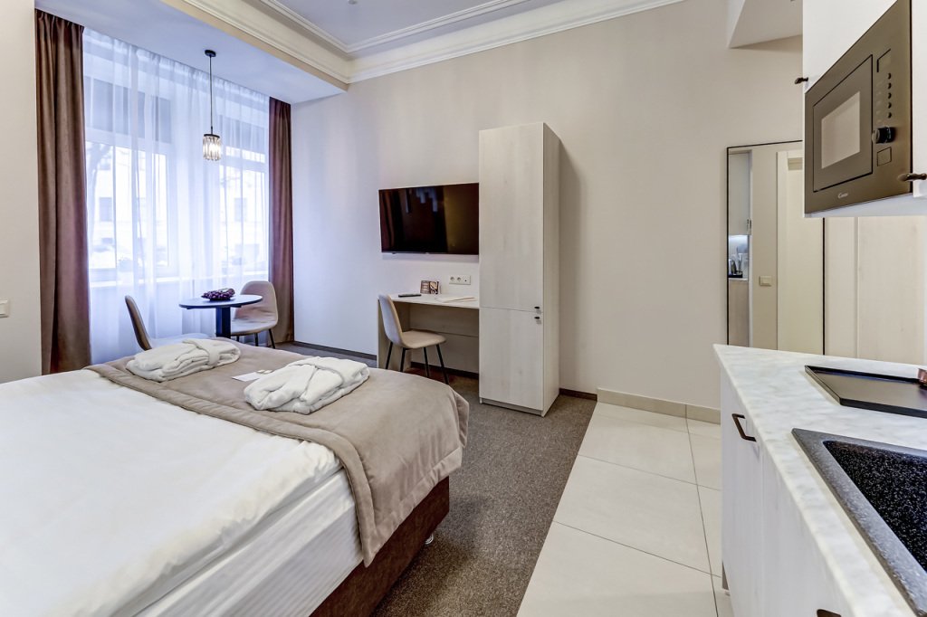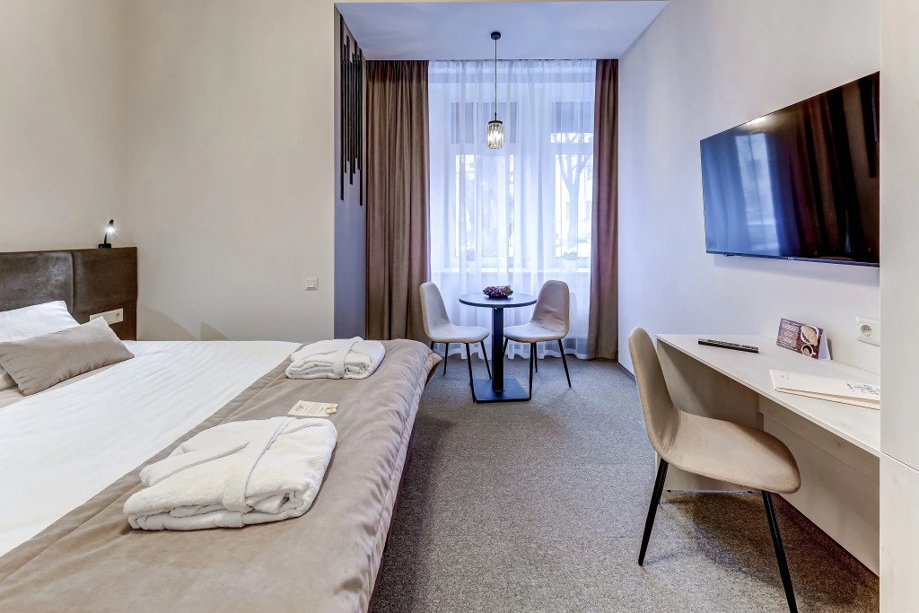 В номере есть телевизор и халат. Оснащение зависит от выбранной категории проживания.