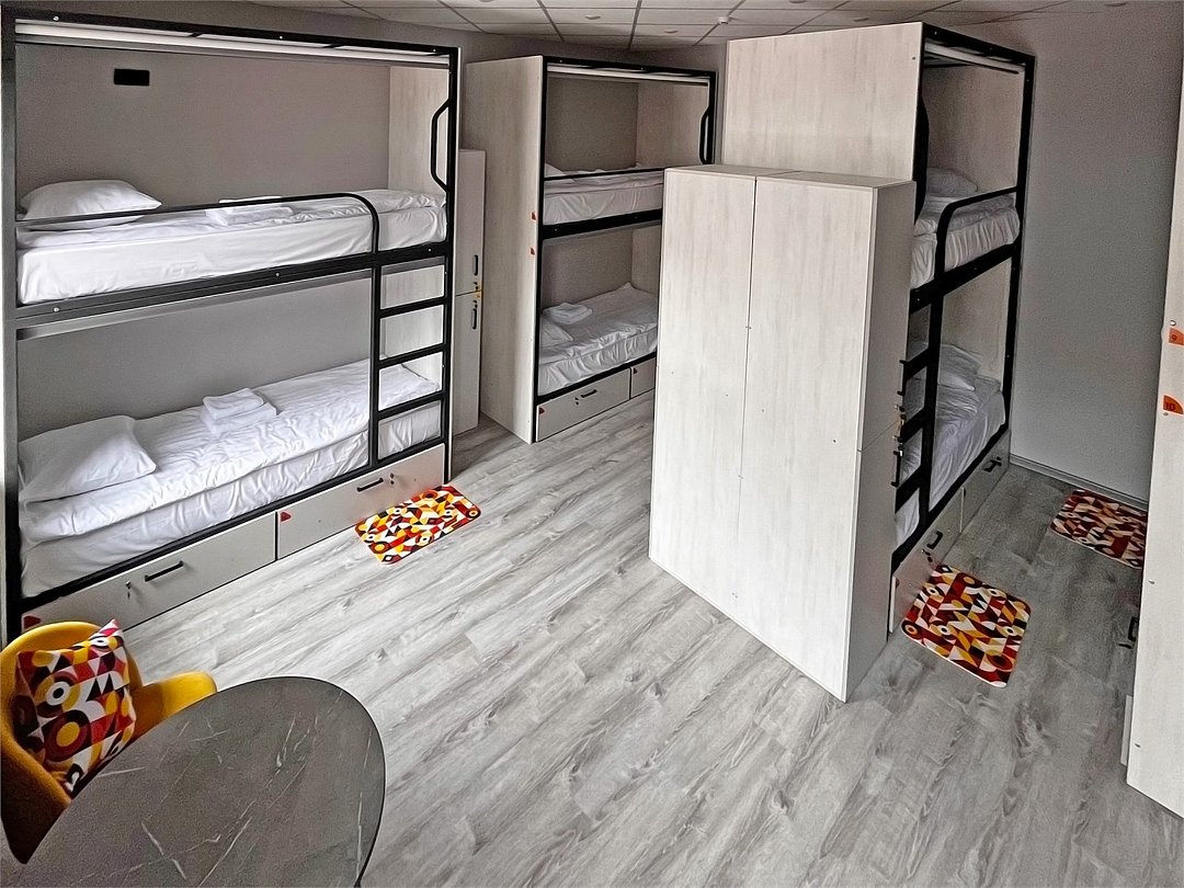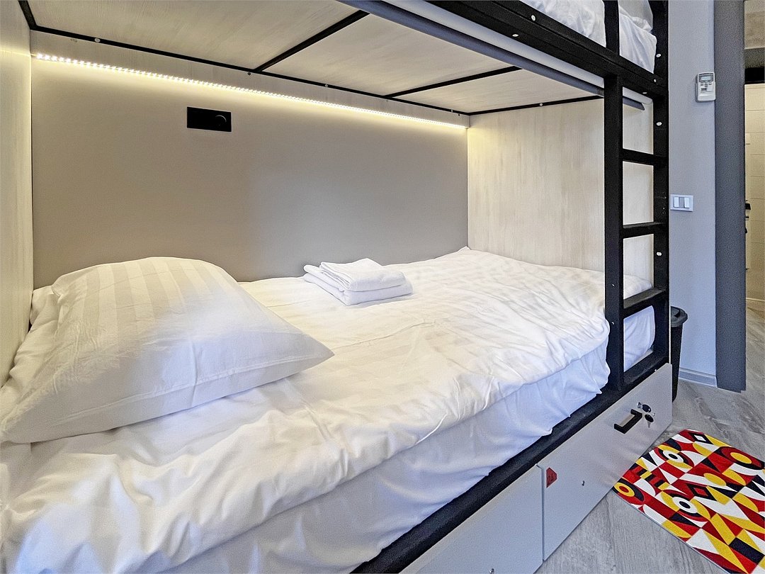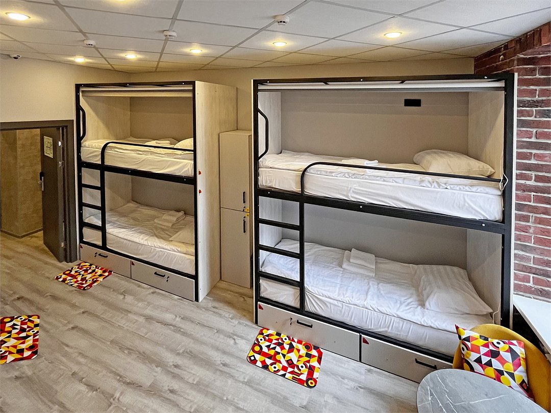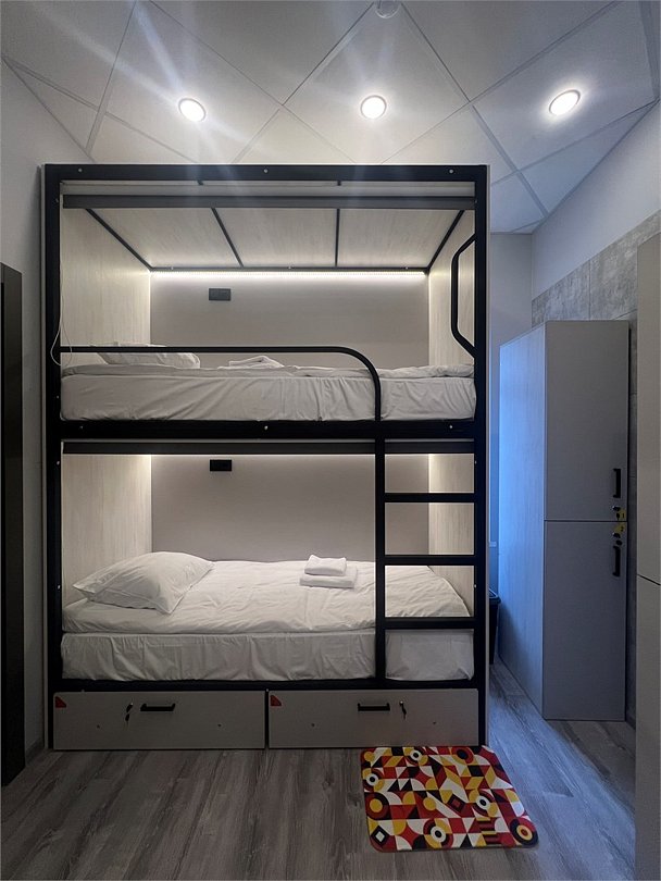 Номер предназначен для размещения мужчин и женщин, поэтому отлично подойдет парам, которые путешествуют вместе и гостям, которые хотят найти новых друзей. Уединиться в личной комфортабельной «капсуле» или вместе собраться в зоне для отдыха – решать вам. Но, что бы вы ни выбрали, вам будет удобно и уютно. В стоимость проживания входит постельное белье и полотенца.Кровать в 8-местном номере для женщин