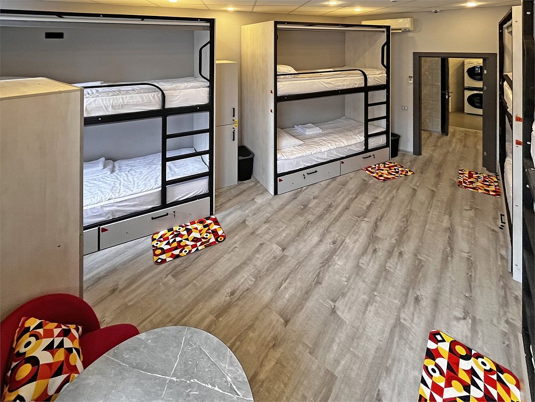 Wi-Fi, интернет, телефон, банные полотенца, шкаф для одежды, журнальный столик, зеркало, набор посуды, питьевая вода, обеденная зона, двухъярусные кровати, отопление, стаканы, кухонная утварь, столовые приборы, стиральная машина и сушилка, стул, мини-кухня, кухонный уголок, номер для некурящих, онлайн-регистрация до заезда, набор для приготовления чая и кофе, услуги прачечной (платно), прачечная (за дополнительную плату), онлайн-регистрацияВ месте в номере