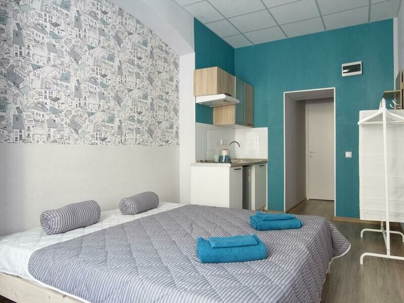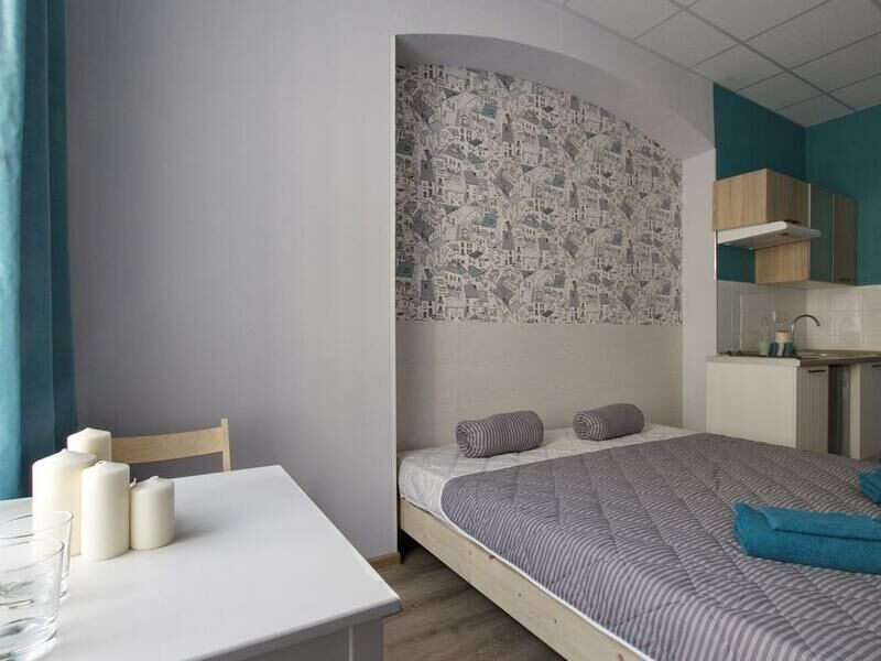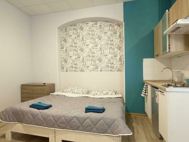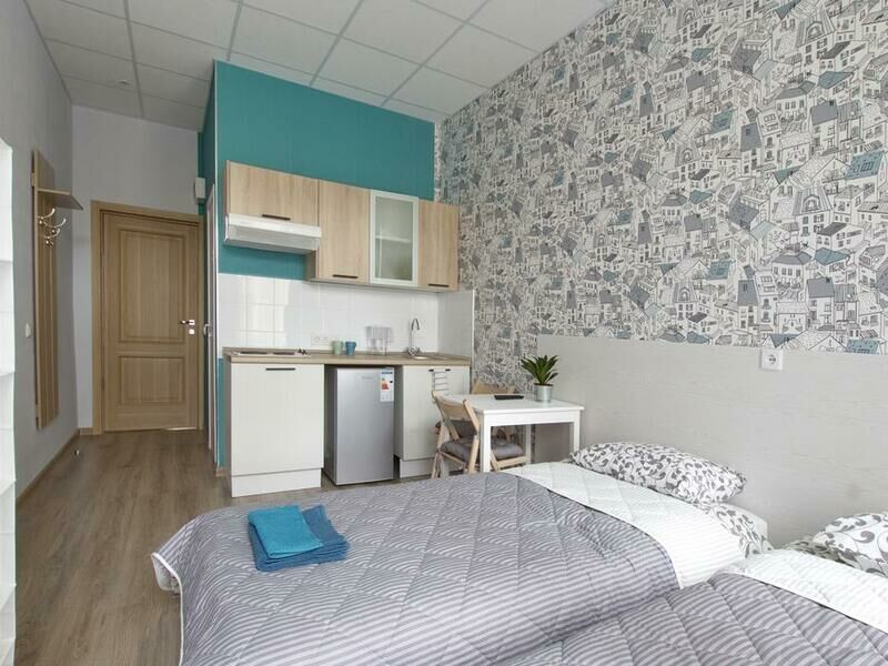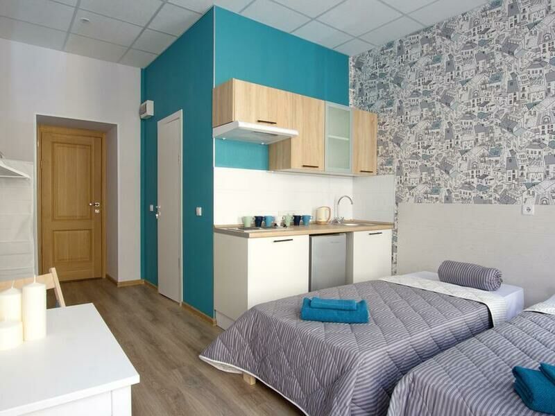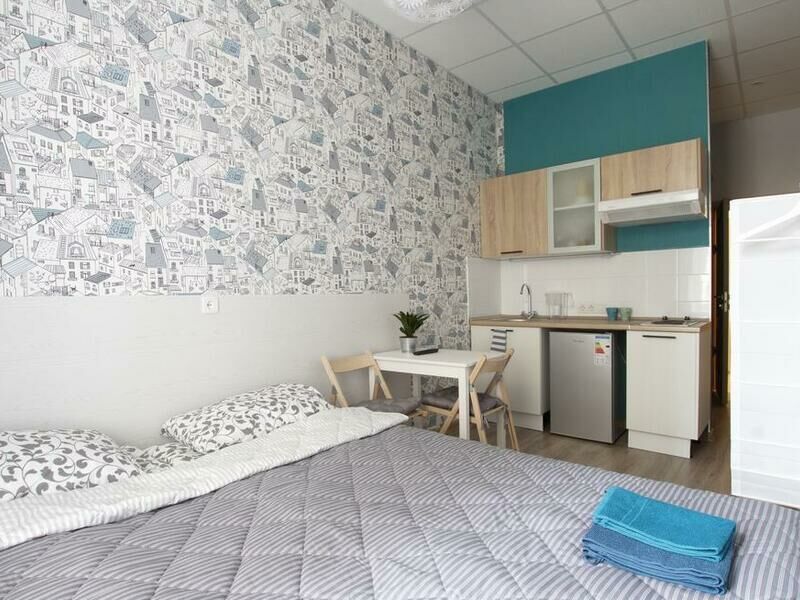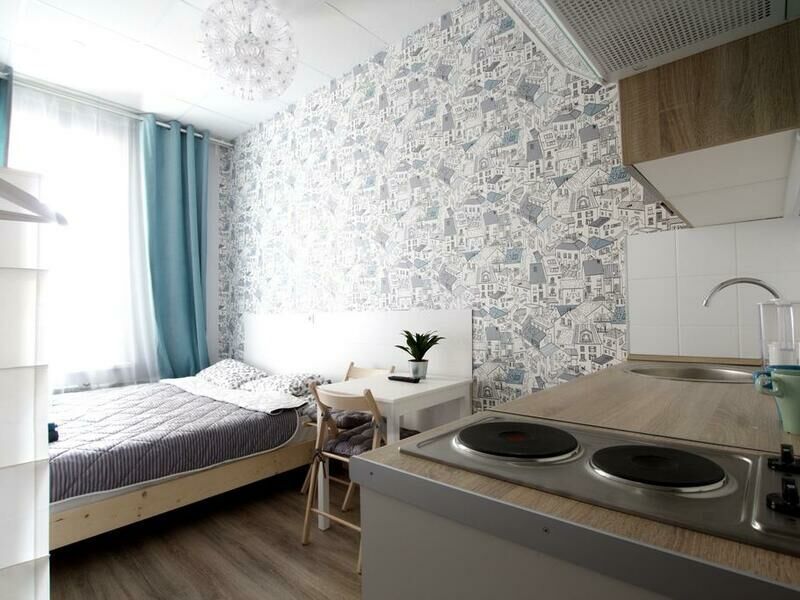 В апартаментах-студио к услугам гостей кухонная зона, электрический чайник и стиральная машина.