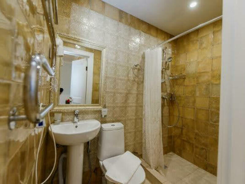 Санузел, конечно, маленький, но есть всё необходимое - фен, мыло, гель для душа, шампунь, полотенцесушитель электрический, даже гигиенический душ. Вот туалетную бумагу не всегда докладывали, мы купили себе сами.