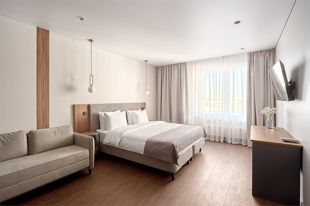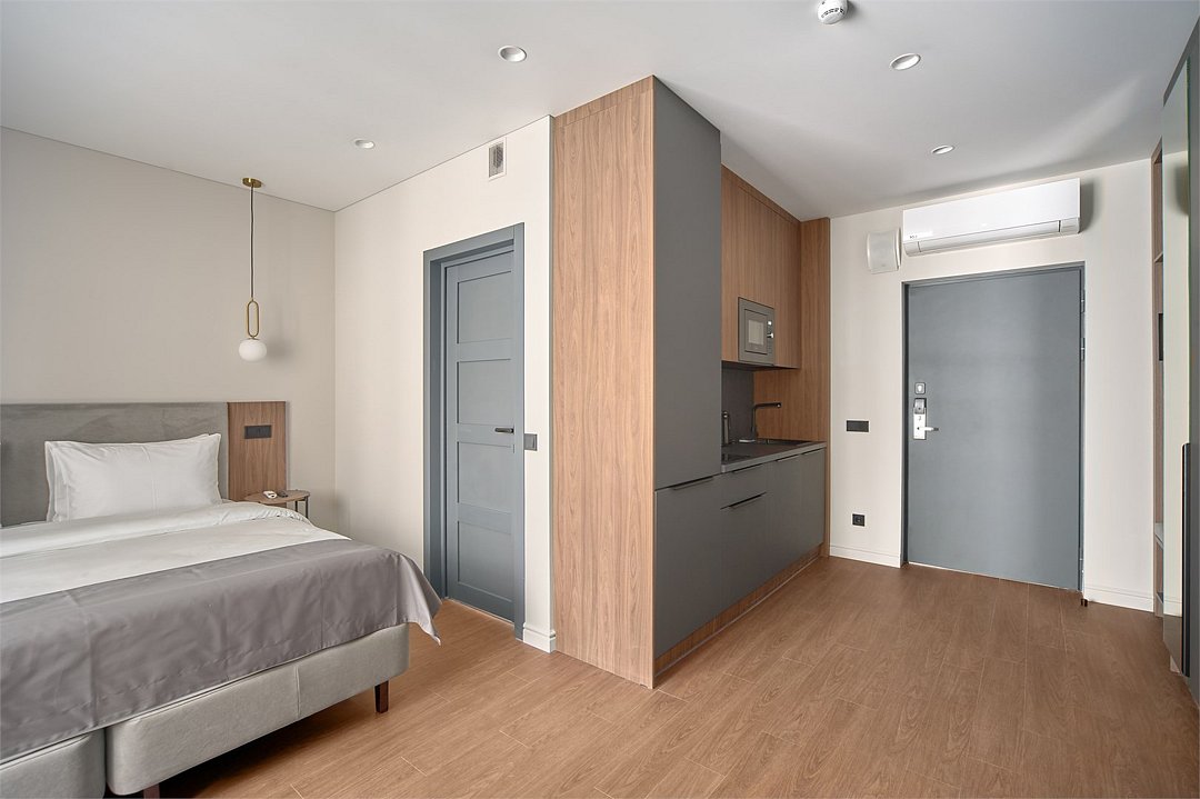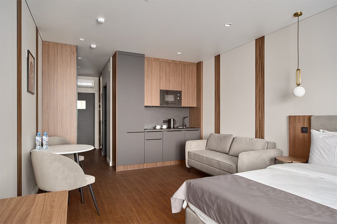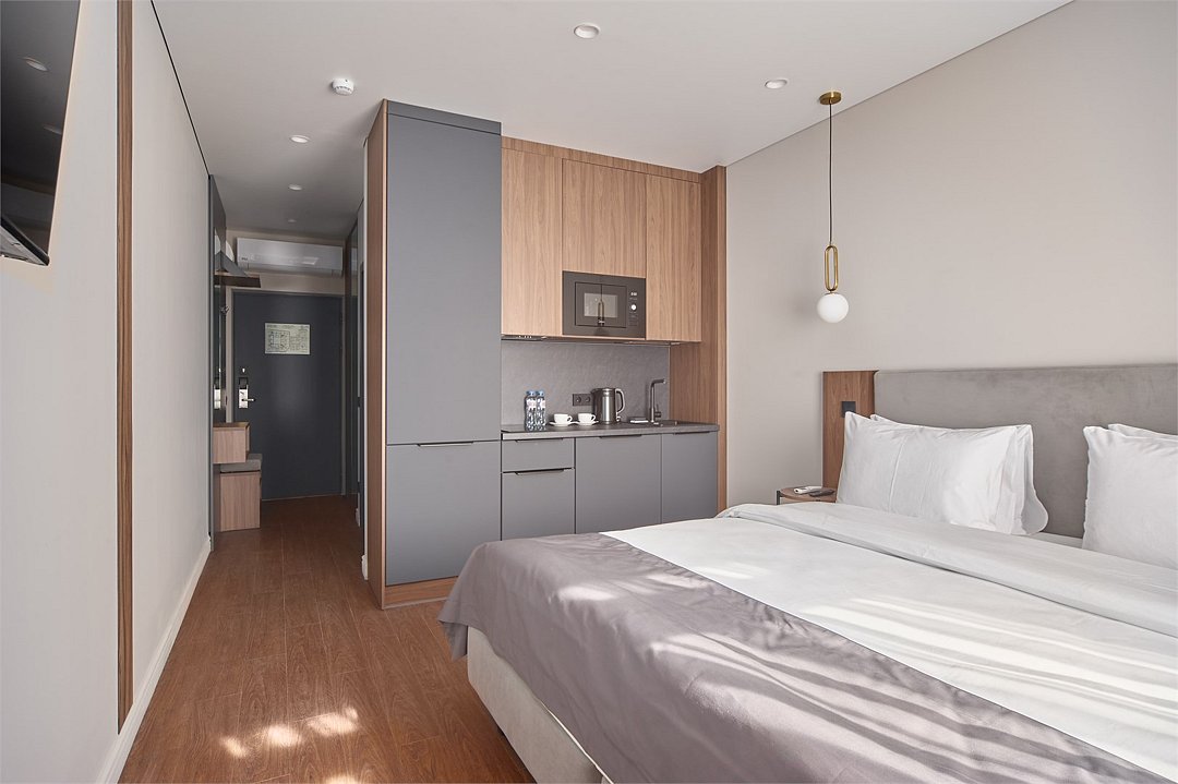 Wi-Fi, холодильник, кондиционер, система климат-контроля, светильник, фен, электронные замки, плита для приготовления пищи, микроволновая печь, душевая кабина, банные полотенца, тапочки, косметические средства, двуспальная кровать, стулья, шкаф для одежды, обеденный стол, зеркало, набор посуды, сейф, стиральная машина, чайник, унитаз, раковина, мягкая мебель, обеденная зона, отопление, вид на город, центральное кондиционирование, вид во двор, стаканы, столовые приборы, тумба, туалетные средства, внутренний телефон, телевизор с плоским экраном, кухонный уголок, номер для некурящих, рабочий стол, уборка номера, вешалки-плечики, бутилированная вода, мыло, нераскладной диван, можно с питомцамиВ гостиничном номере
