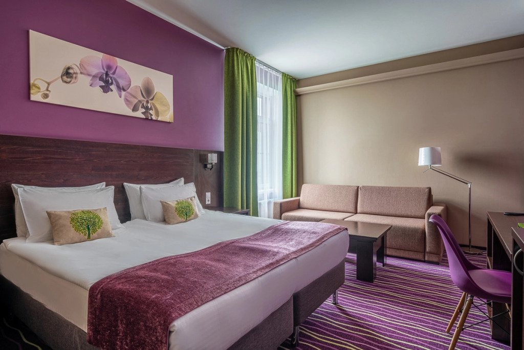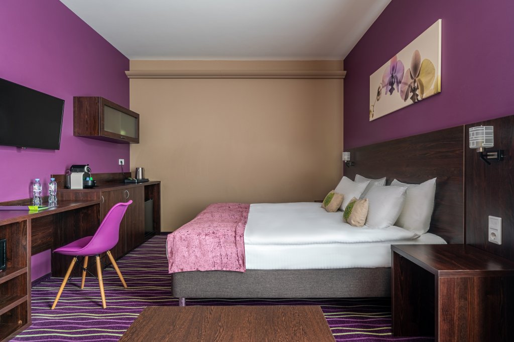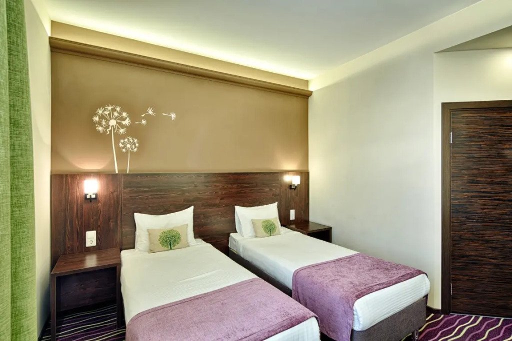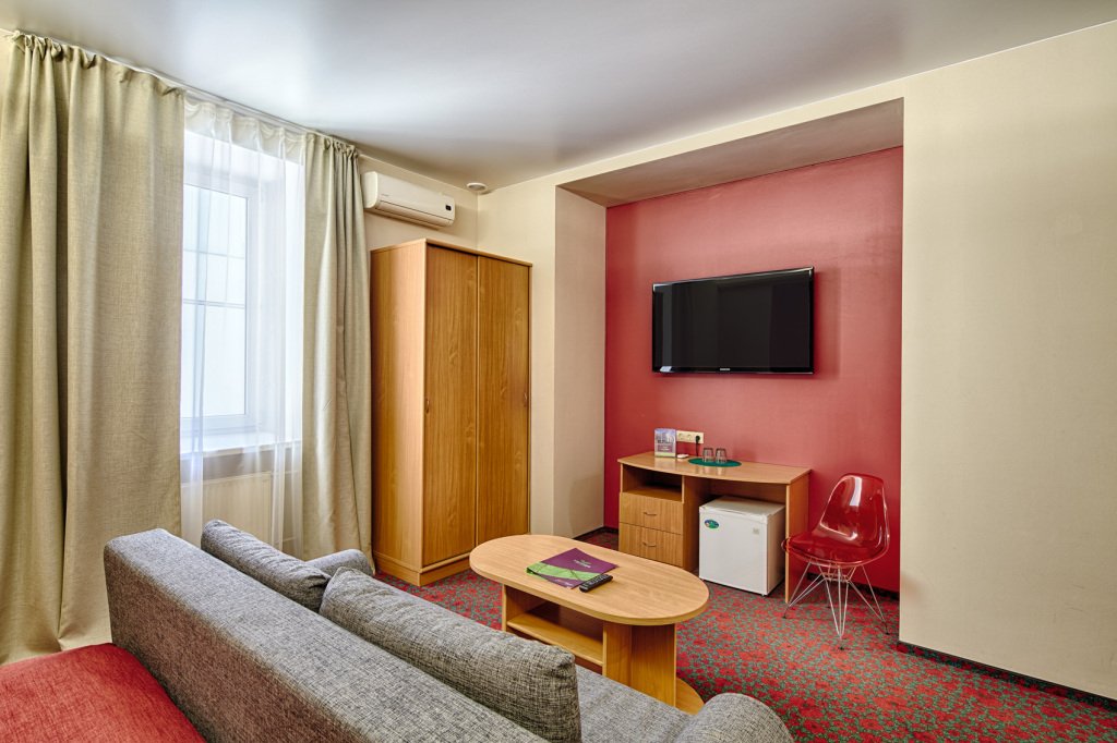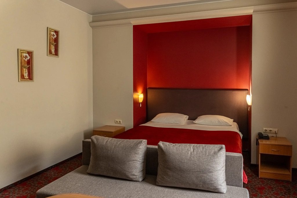 Чтобы вы могли отдохнуть после долгого дня, в номере есть телевизор и халат. Оснащение зависит от выбранной категории номера.