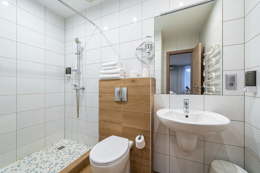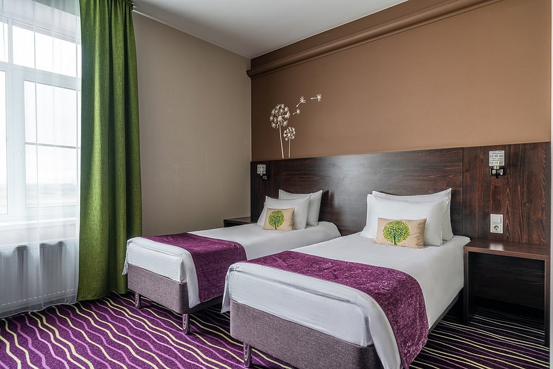Номер с одной большой кроватью или с двумя односпальными кроватями 18 кв.м., Wi-Fi , шторы blackout, холодильник, телевизор, душевая кабина, туалетные принадлежности, фен, комплект полотенец. Для размещения 3-го человека в номера предоставляется евро-раскладушка.Услуги и удобства