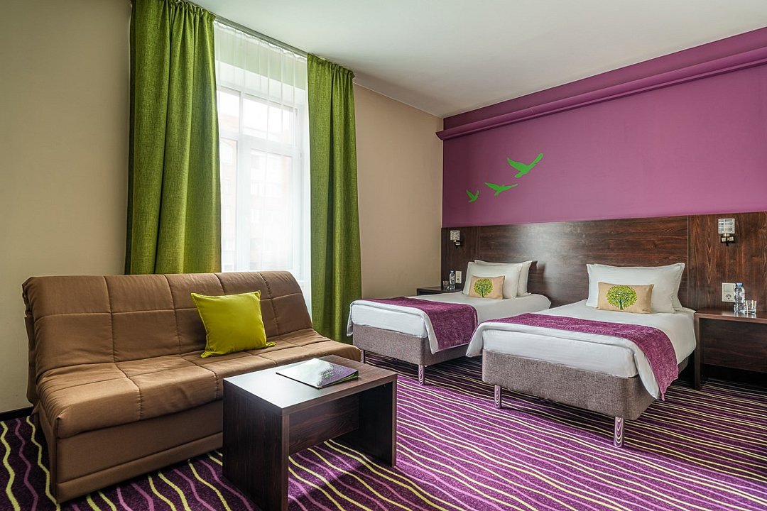 2-х комнатный семейный номер 41,6 кв. м., между комнатами есть дверь, Wi-Fi, шторы blackout, холодильник, телевизор, письменный стол, душевая кабина, набор полотенец, фен, туалетные принадлежностиУслуги и удобства