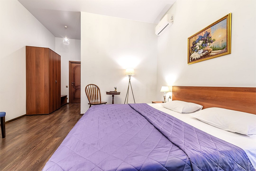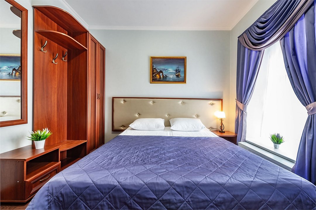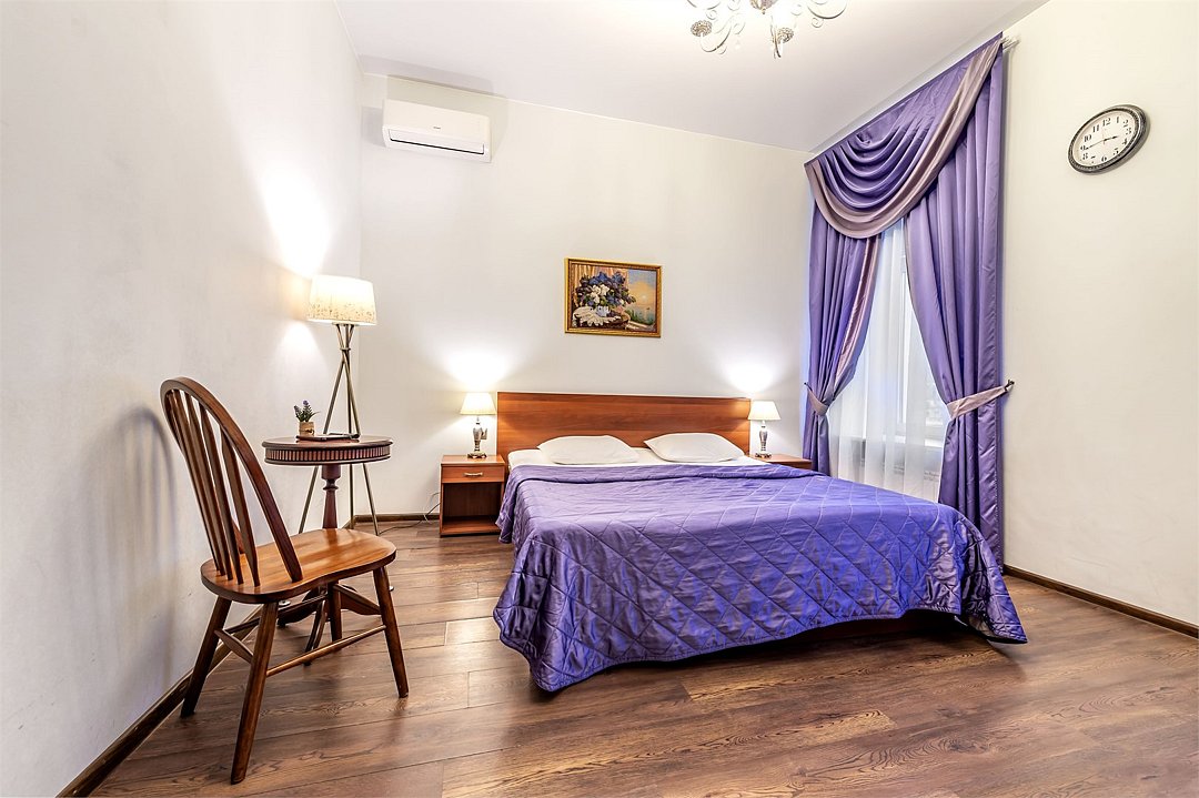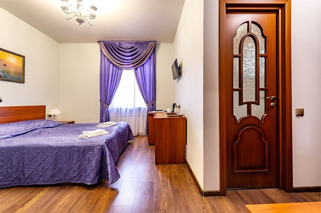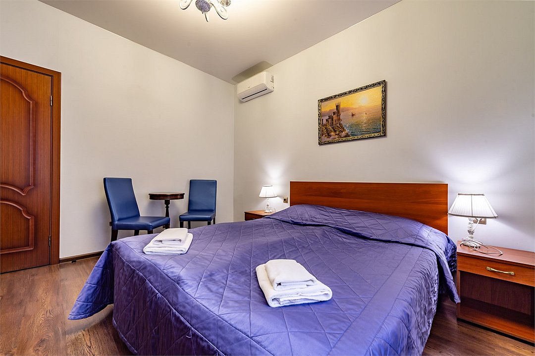 Улучшенный номер с двуспальной кроватью. В номере кондиционер, телевизор с плоским экраном, кабельное телевидение, Wi-Fi, электронный сейф, телефон, центральное отопление, стол, шкаф, мини холодильник, электрочайник, собственная ванная комната с душевой кабиной, феном, тапочками. Дополнительное место - раскладушка. Номера расположены на 4-5 этажах. В доме нет лифтаУслуги и удобства