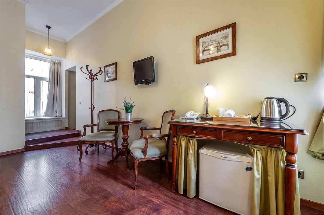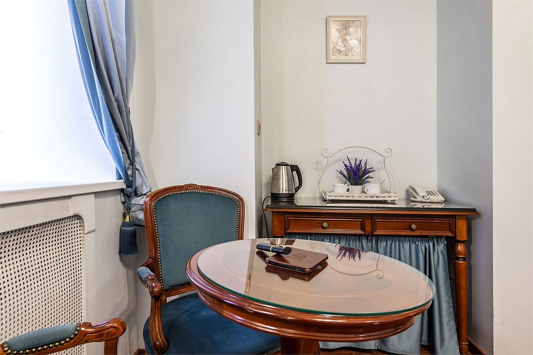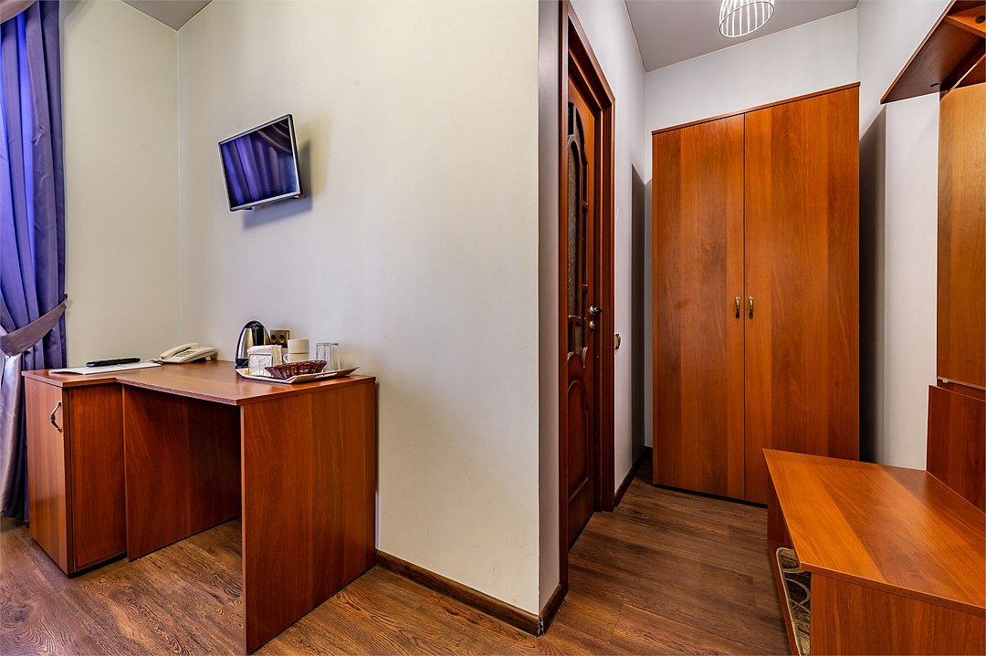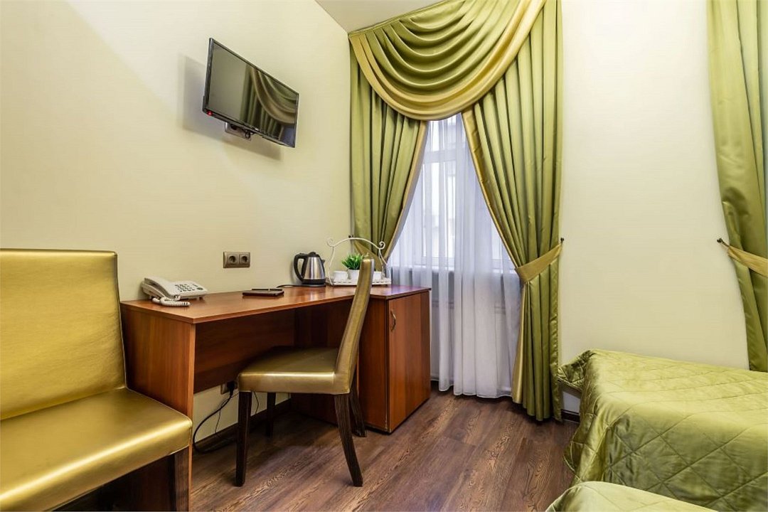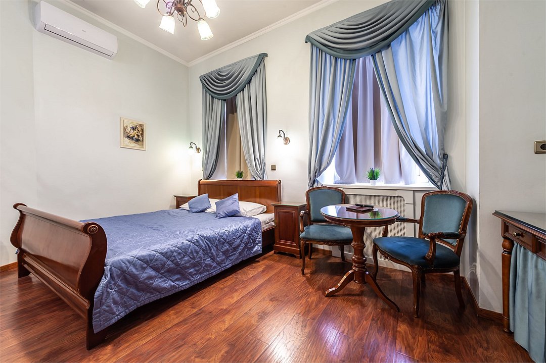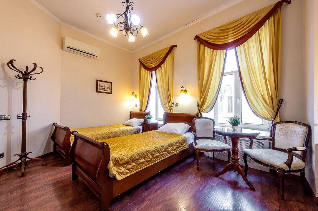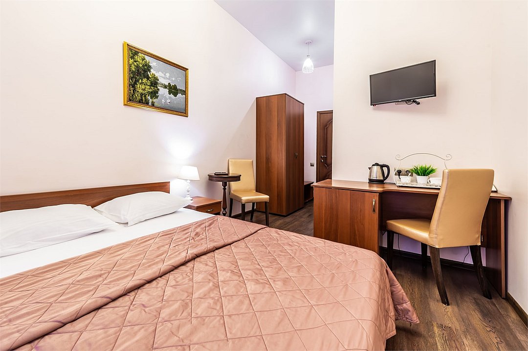 Комфортный номер с 1 или 2 кроватями, с видом на Невский проспект или во внутренний дворик. В номере кондиционер, телевизор, кабельное телевидение, Wi-Fi, электронный сейф, телефон, центральное отопление, стол, шкаф, мини холодильник, электрочайник, собственная ванная комната с душевой кабиной, феном, тапочками и набором полотенец. Номера расположены на 5 этаже. В доме нет лифтаУслуги и удобства
