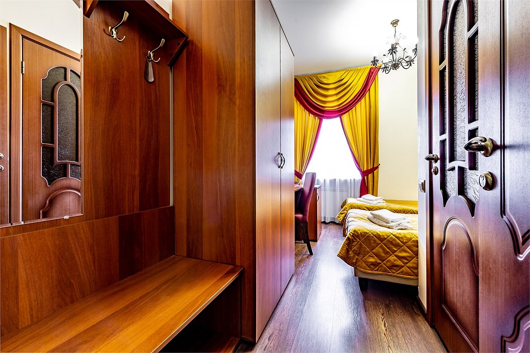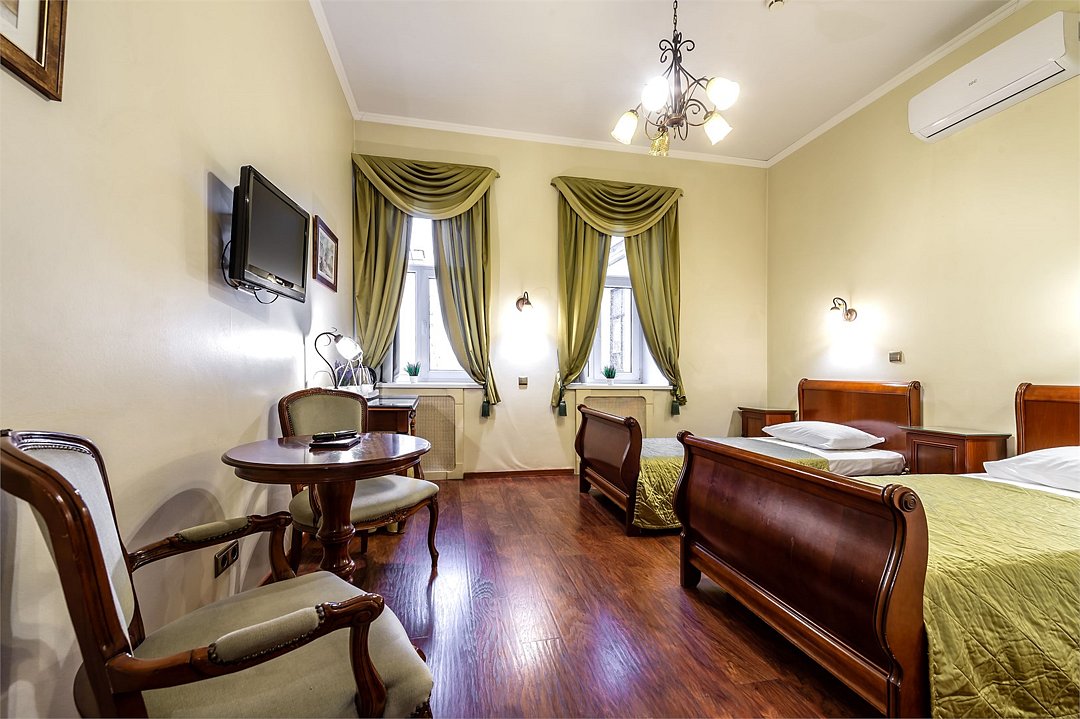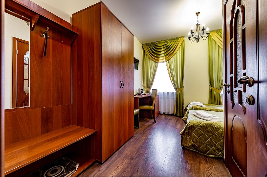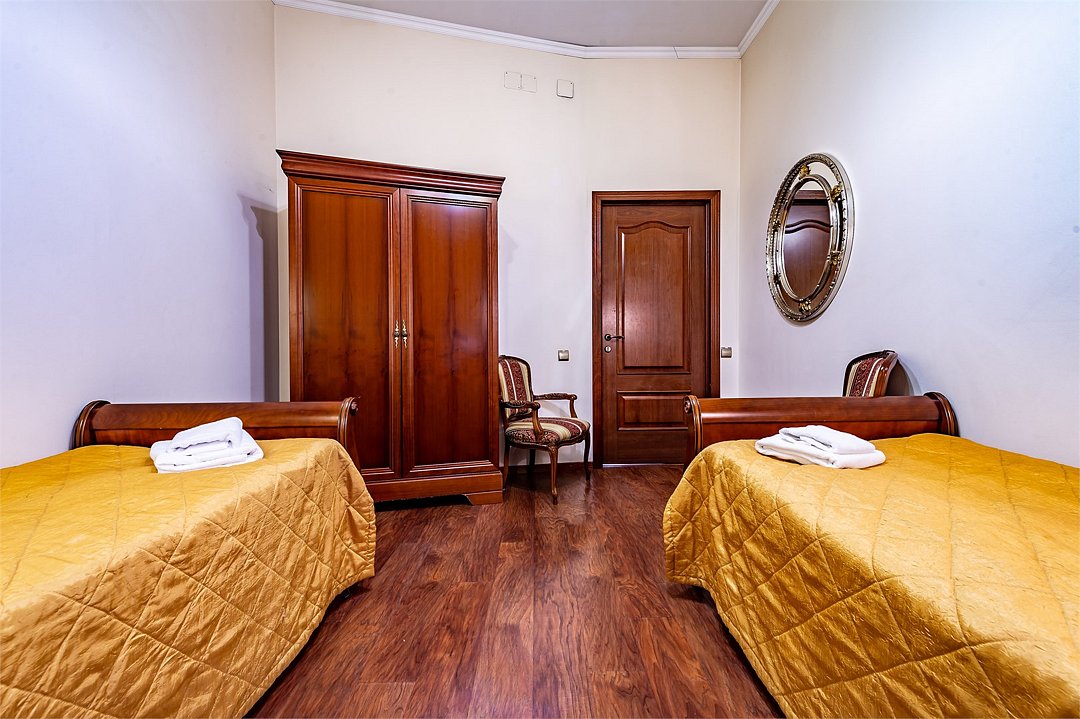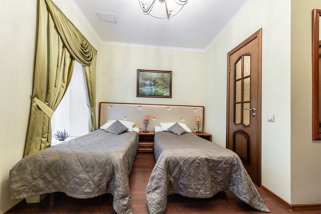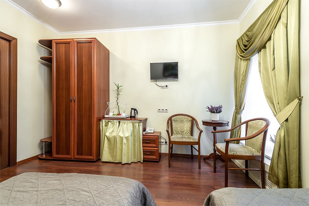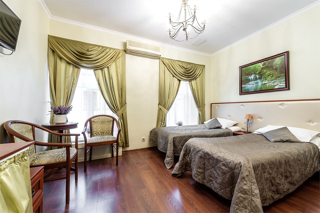 Улучшенный номер с двумя односпальными кроватями и видом во внутренний дворик. В номере кондиционер, телевизор с плоским экраном, кабельное телевидение, Wi-Fi, электронный сейф, телефон, центральное отопление, стол, шкаф, мини холодильник, электрочайник, собственная ванная комната с душевой кабиной, феном, банными и косметическими принадлежностями, тапочками. Дополнительное место - раскладушка. Номера расположены на 4-5 этажах, в доме нет лифтаУслуги и удобства