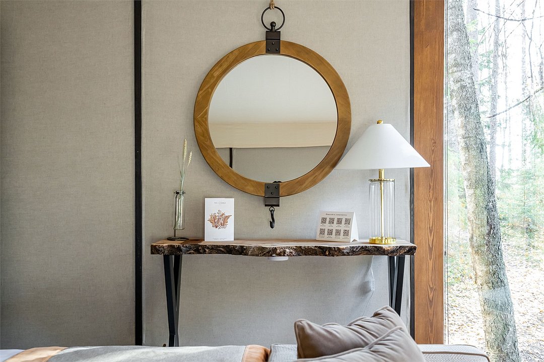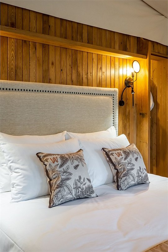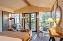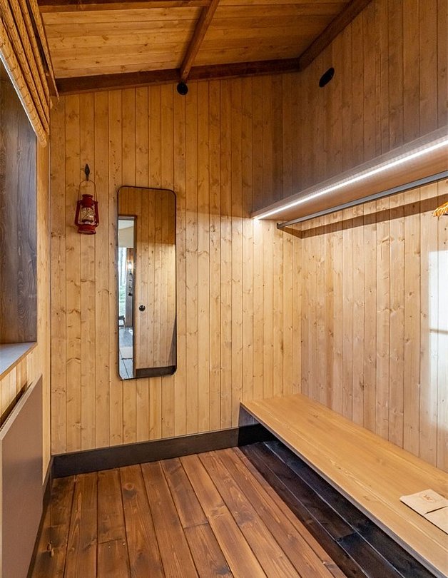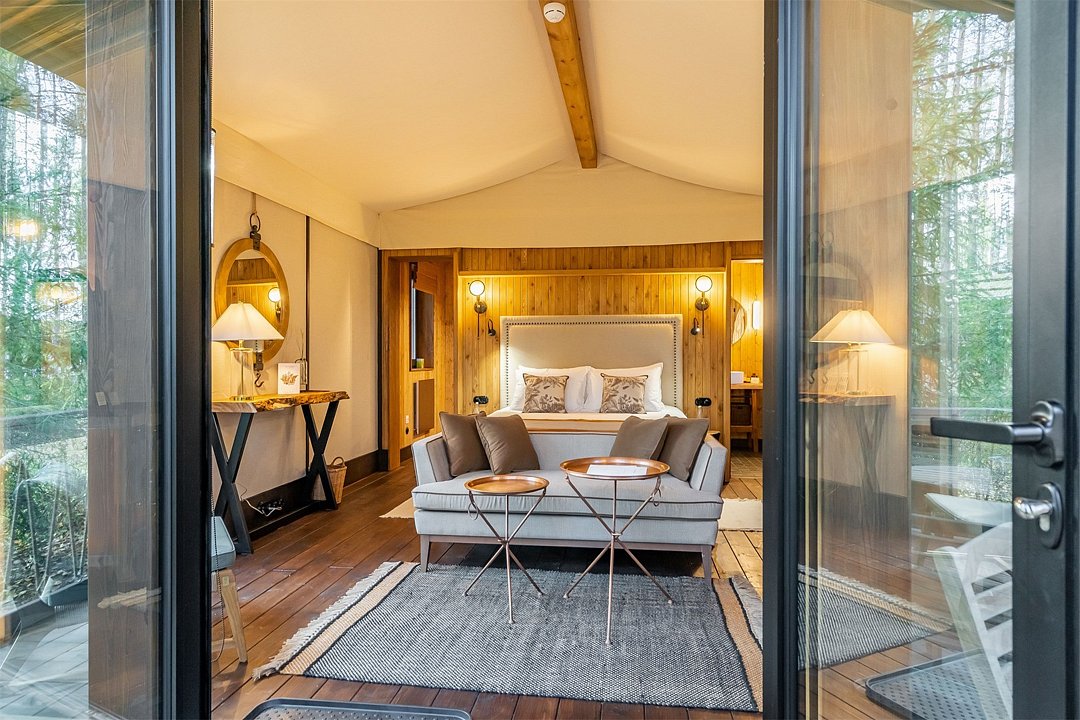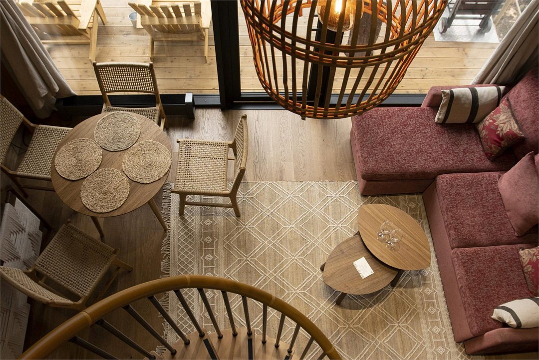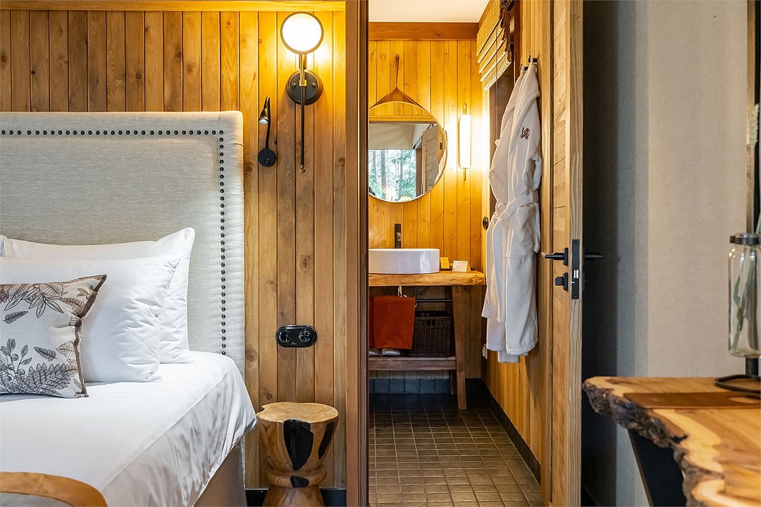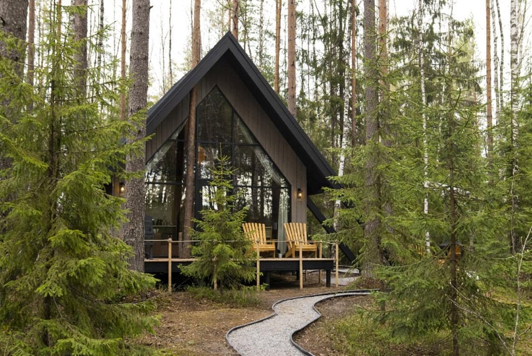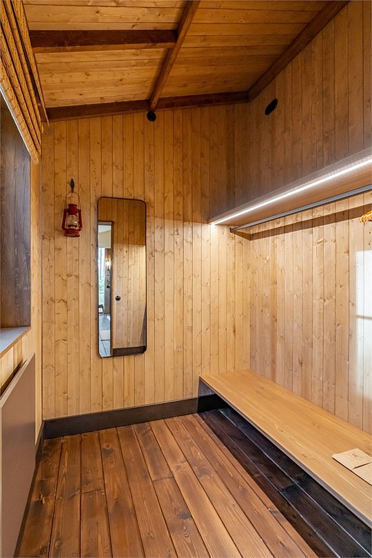 Большой деревянный лодж в лесу с панорамными окнами и 2 спальнями: с двуспальной кроватью или 2 отдельными (по запросу) на 1 этаже и двуспальной кроватью со вторым светом на 2 этаже. Гостиная оборудована проектором для просмотра коллекции фильмов, раскладным диваном, есть кухня и комфортная ванная комната. Просторная терраса с грилем и уличной мебелью для отдыха под открытым небом, а также собственная костровая зона с навесом для теплых посиделок у костра. Интерьер выполнен в стиле сафари: экологичные материалы, природные фактуры, натуральные цвета и яркие акценты. Размещение: 4 основных спальных места + доп.диван для ребёнка до 14 лет в гостиной. В стоимость проживания включено: завтрак, постельные принадлежности премиум класса, экокосметика, комплиментарная вода, кофе и набор чая. За дополнительную плату можно заказать room-service, гриль-сеты (мясо/рыба/птица) или инструменты для приготовления блюд в собственной зоне BBQ, мешок дров и угли, а также кино-сет. Время заезда — с 15:00 Время выезда — до 12:00Услуги и удобства