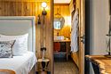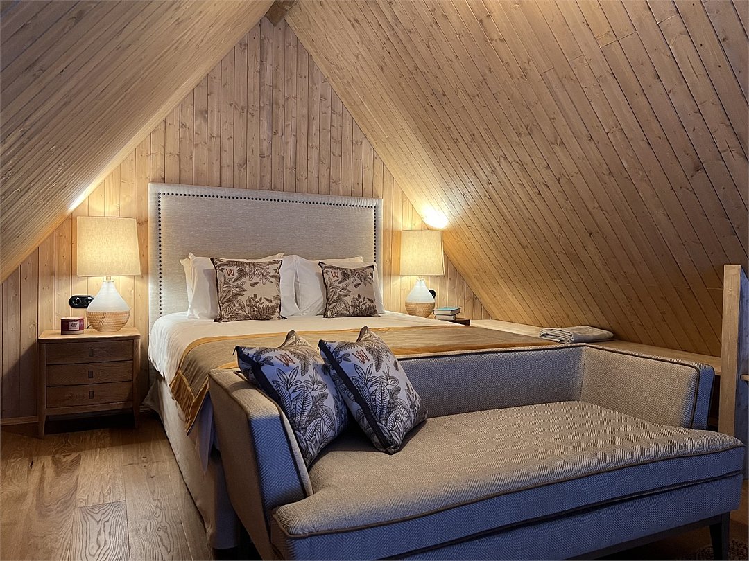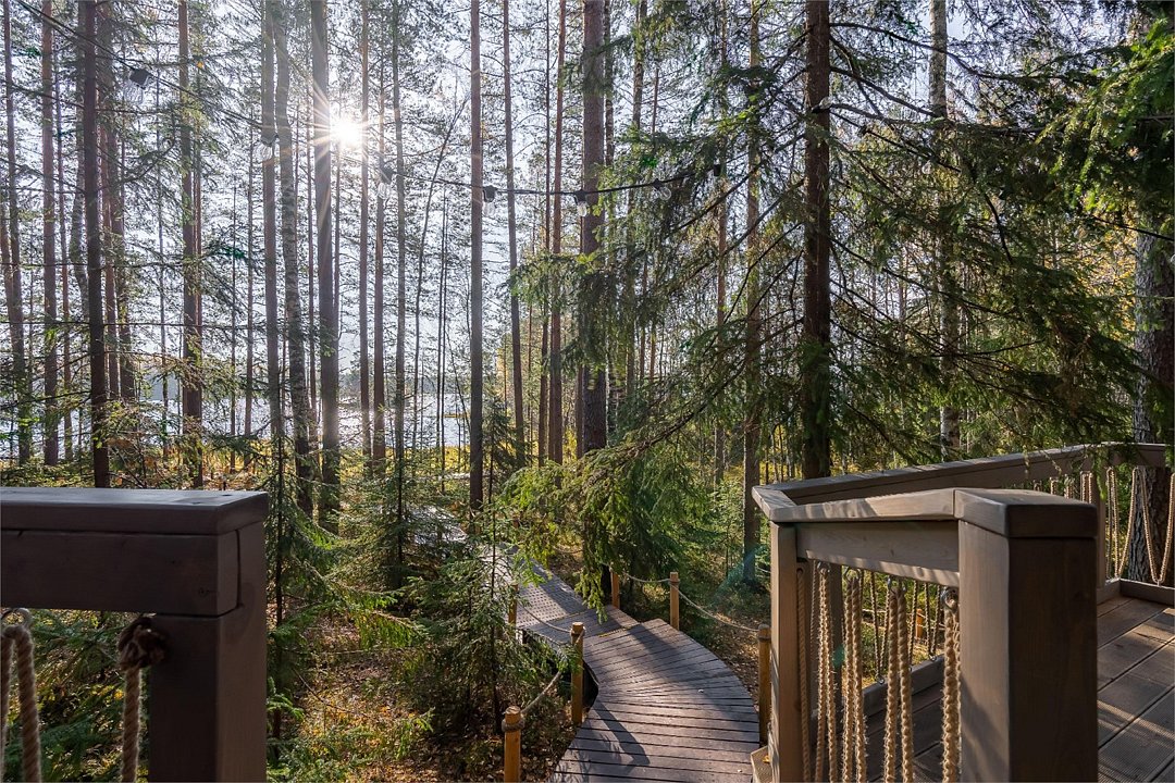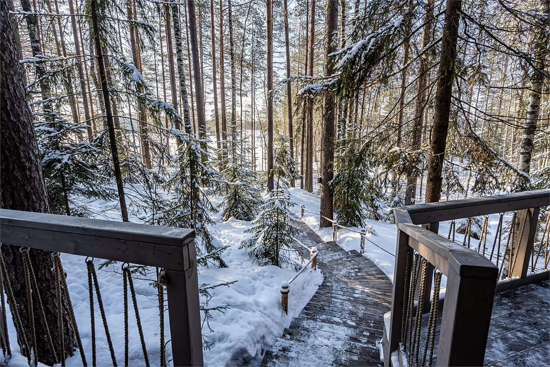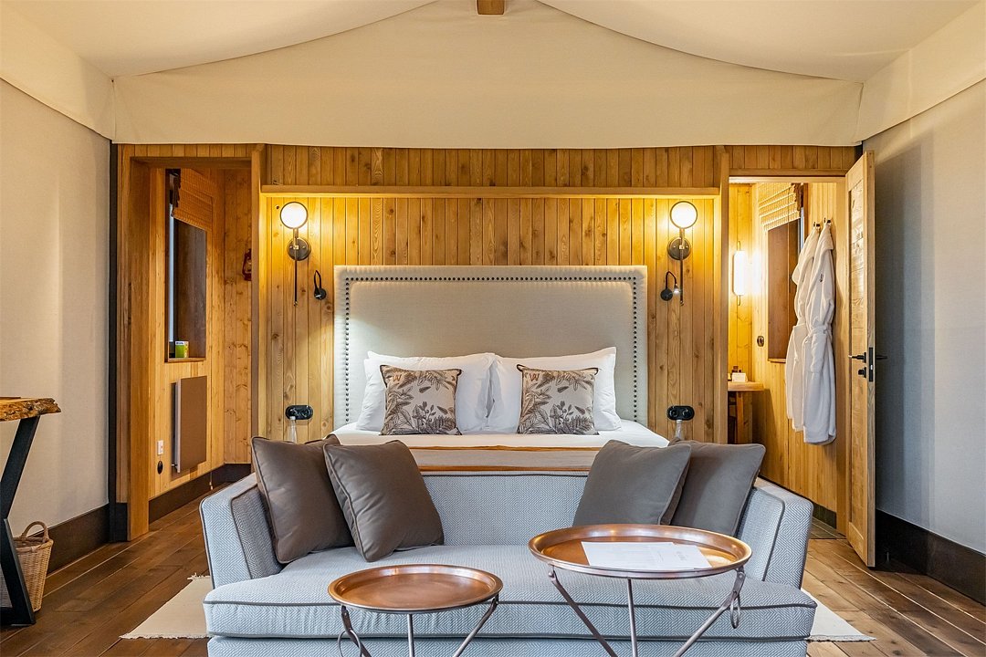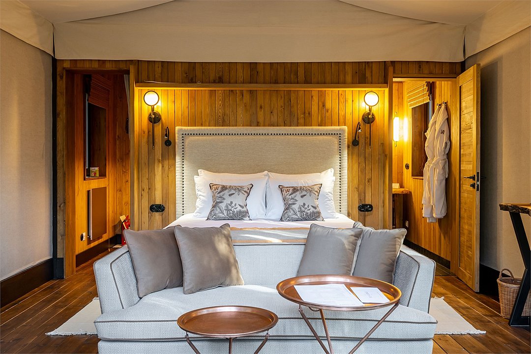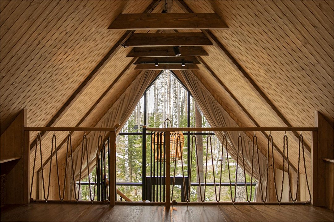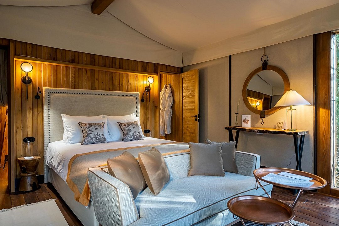 Большой деревянный лодж в лесу с панорамными окнами и 2 спальнями: с двуспальной кроватью или 2 отдельными (по запросу) на 1 этаже и двуспальной кроватью со вторым светом на 2 этаже. Гостиная оборудована проектором для просмотра коллекции фильмов, раскладным диваном, есть кухня и комфортная ванная комната. Просторная терраса с грилем и уличной мебелью для отдыха под открытым небом, а также собственная костровая зона с навесом для теплых посиделок у костра. Интерьер выполнен в стиле сафари: экологичные материалы, природные фактуры, натуральные цвета и яркие акценты. Размещение: 4 основных спальных места + доп.диван для ребёнка до 14 лет в гостиной. В стоимость проживания включено: завтрак, постельные принадлежности премиум класса, экокосметика, комплиментарная вода, кофе и набор чая. За дополнительную плату можно заказать room-service, гриль-сеты (мясо/рыба/птица) или инструменты для приготовления блюд в собственной зоне BBQ, мешок дров и угли, а также кино-сет. Время заезда — с 15:00 Время выезда — до 12:00Услуги и удобства