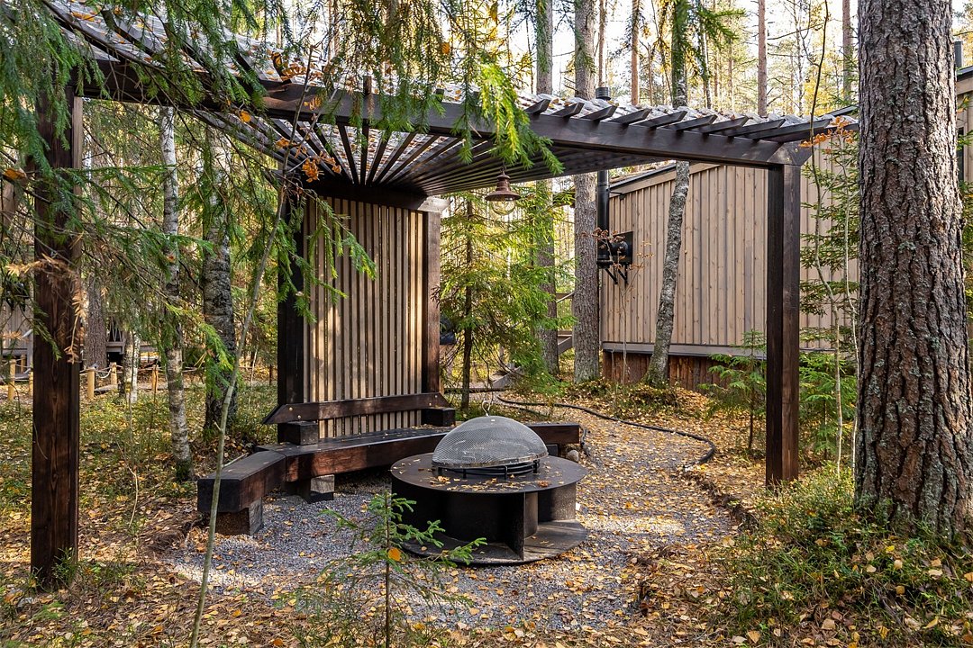 Деревянный лодж с печкой в хвойном лесу. Большая двуспальная кровать и комфортная ванная комната, дополнительное детское спальное место с зоной для хранения вещей. Просторная терраса с уличной мебелью для завтраков под теплыми лучами солнца и отдыха под открытым небом, а также собственная зона BBQ с навесом под кронами деревьев для приготовления блюд на углях круглый год или для теплых посиделок у костра. Интерьер выполнен в стиле сафари: экологичные материалы, природные фактуры, натуральные цвета и яркие акценты. Размещение: 1-2 гостя + 1 ребенок до 14 лет с отдельным спальным местом. В стоимость проживания включено: завтрак, постельные принадлежности премиум класса, экокосметика, вода, кофе и набор чая, проектор для просмотра фильмов на большом экране — лесной кинотеатр у вас в лодже, дрова для растопки печки. За дополнительную плату можно заказать room-service, гриль-сеты (мясо/рыба/птица) или инструменты для приготовления блюд в собственной зоне BBQ, мешок дров и угли, а также кино-сет для просмотра фильмов. Время заезда — с 15:00 Время выезда — до 12:00Услуги и удобства
