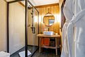 Деревянный лодж с печкой в хвойном лесу. Большая двуспальная кровать и комфортная ванная комната, отдельная гардеробная. Увеличенная терраса с уличной мебелью для завтраков под теплыми лучами солнца и отдыха под открытым небом. Интерьер выполнен в стиле сафари: экологичные материалы, природные фактуры, натуральные цвета и яркие акценты. Размещение: 1-2 гостя. В стоимость проживания включено: завтрак, постельные принадлежности премиум класса, экокосметика, вода, кофе и набор чая, проектор для просмотра фильмов на большом экране — лесной кинотеатр у вас в лодже, дрова для растопки печки. За дополнительную плату можно заказать room-service и кино-сет для просмотра фильмов. Время заезда — с 15:00 Время выезда — до 12:00Услуги и удобства
