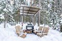 Деревянный лодж с печкой в хвойном лесу. Большая двуспальная кровать и комфортная ванная комната, отдельная гардеробная. Просторная терраса с уличной мебелью для завтраков под теплыми лучами солнца и отдыха под открытым небом, а также собственная зона BBQ с навесом под кронами деревьев для приготовления блюд на углях круглый год или для теплых посиделок у костра. Интерьер выполнен в стиле сафари: экологичные материалы, природные фактуры, натуральные цвета и яркие акценты. Размещение: 1-2 гостя В стоимость проживания включено: завтрак, постельные принадлежности премиум класса, экокосметика, вода, кофе и набор чая, проектор для просмотра фильмов на большом экране — лесной кинотеатр у вас в лодже, дрова для растопки печки. За дополнительную плату можно заказать room-service, гриль-сеты (мясо/рыба/птица) или инструменты для приготовления блюд в собственной зоне BBQ, мешок дров и угли, а также кино-сет для просмотра фильмов. Время заезда — с 15:00 Время выезда — до 12:00Услуги и удобства