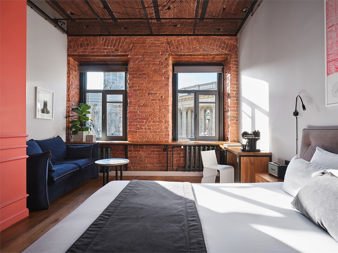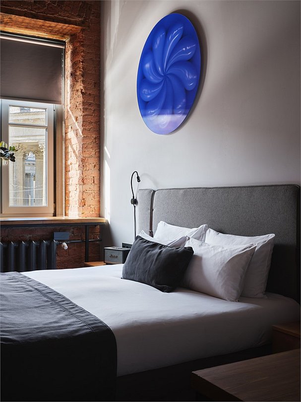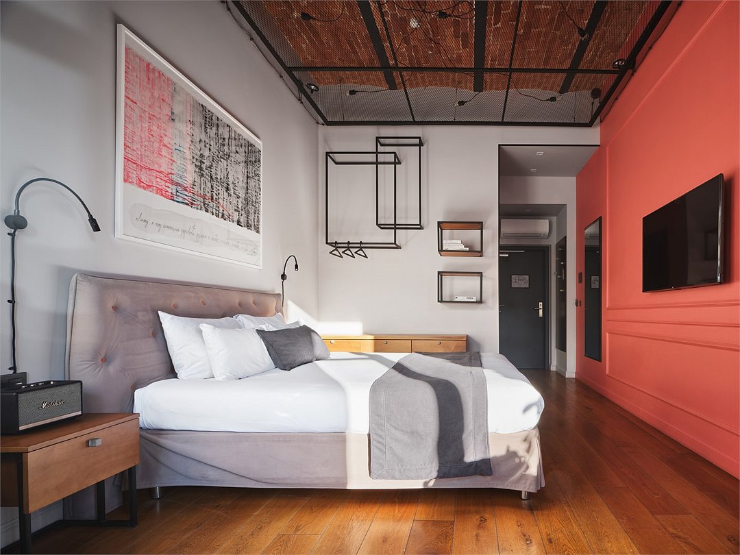 Номер для двоих c видом на самый масштабный в Петербурге мурал от художника Покраса Лампаса.Услуги и удобства