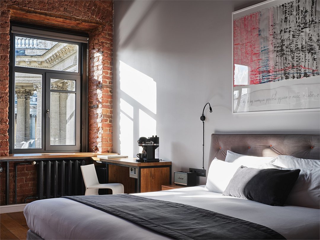 Колоритный номер для двоих с видом на Казанский собор и колоннаду.Услуги и удобства