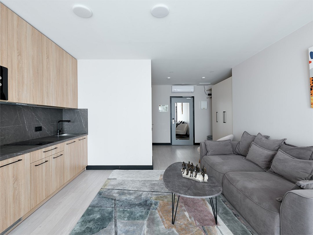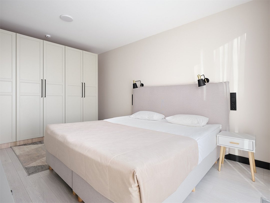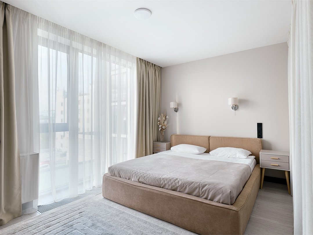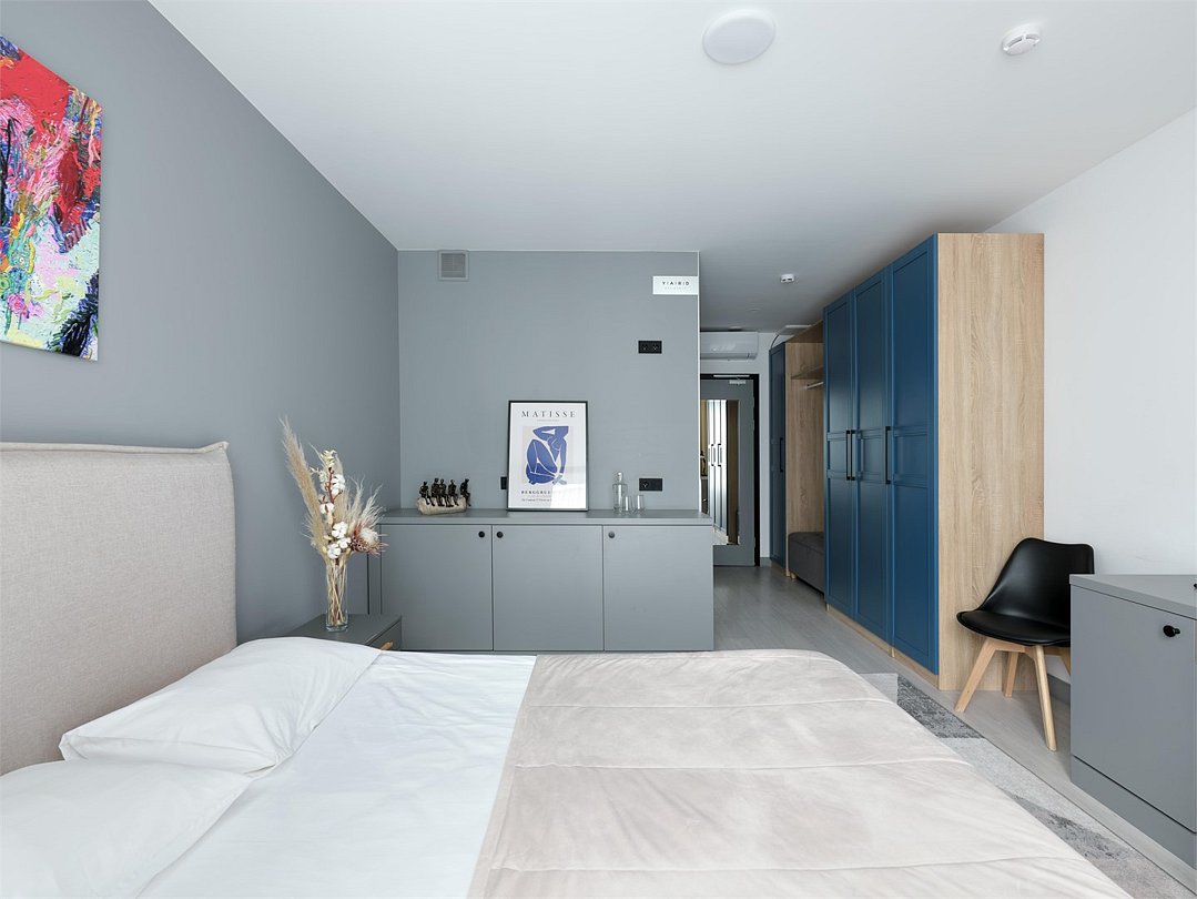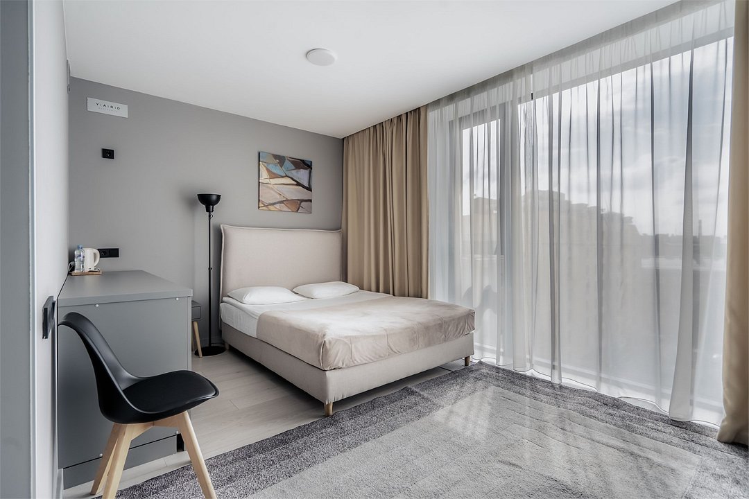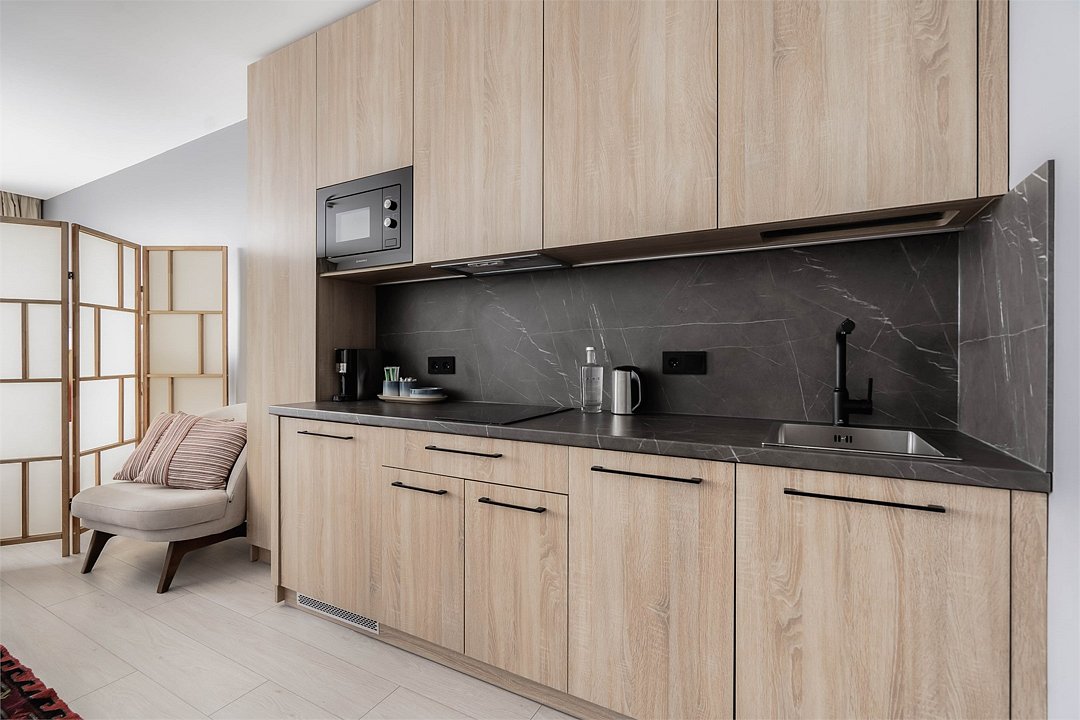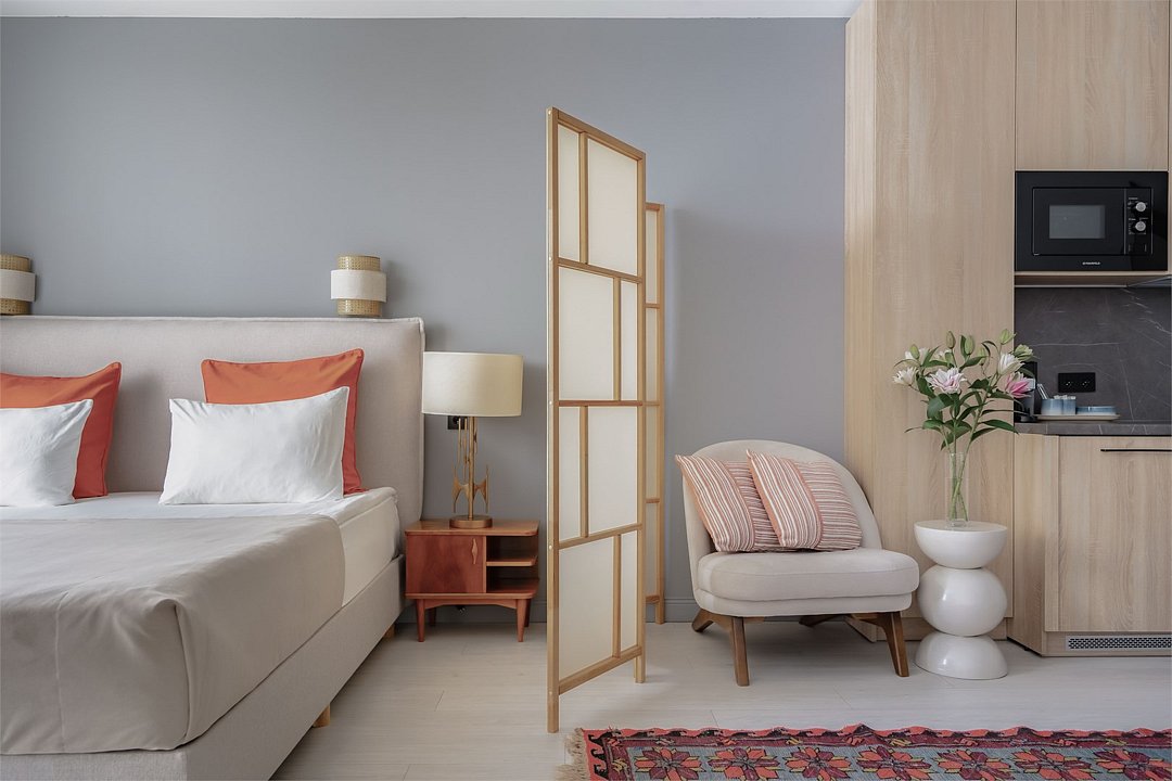 Стильные и уютные номера с кухонным пространством, созданные для вашего комфорта и удобства. Каждый номер оснащен спальной зоной с двуспальной кроватью и идеально оборудованной кухонной зоной. Для Вашего удобства в номере также предусмотрена стиральная машина, что делает пребывание еще более удобным. Этот светлый номер станет идеальным местом как для краткосрочного отдыха, так и для длительного проживания, позволяя вам чувствовать себя как дома.Услуги и удобства