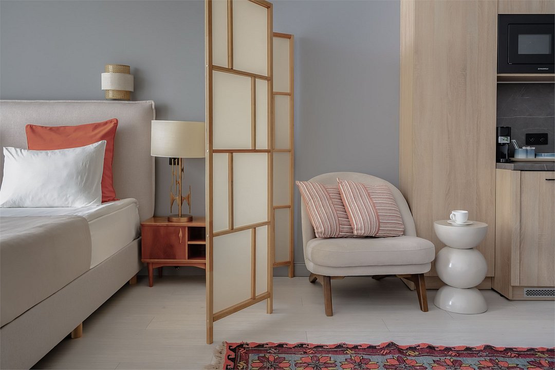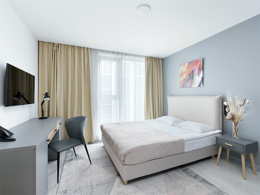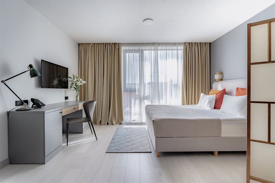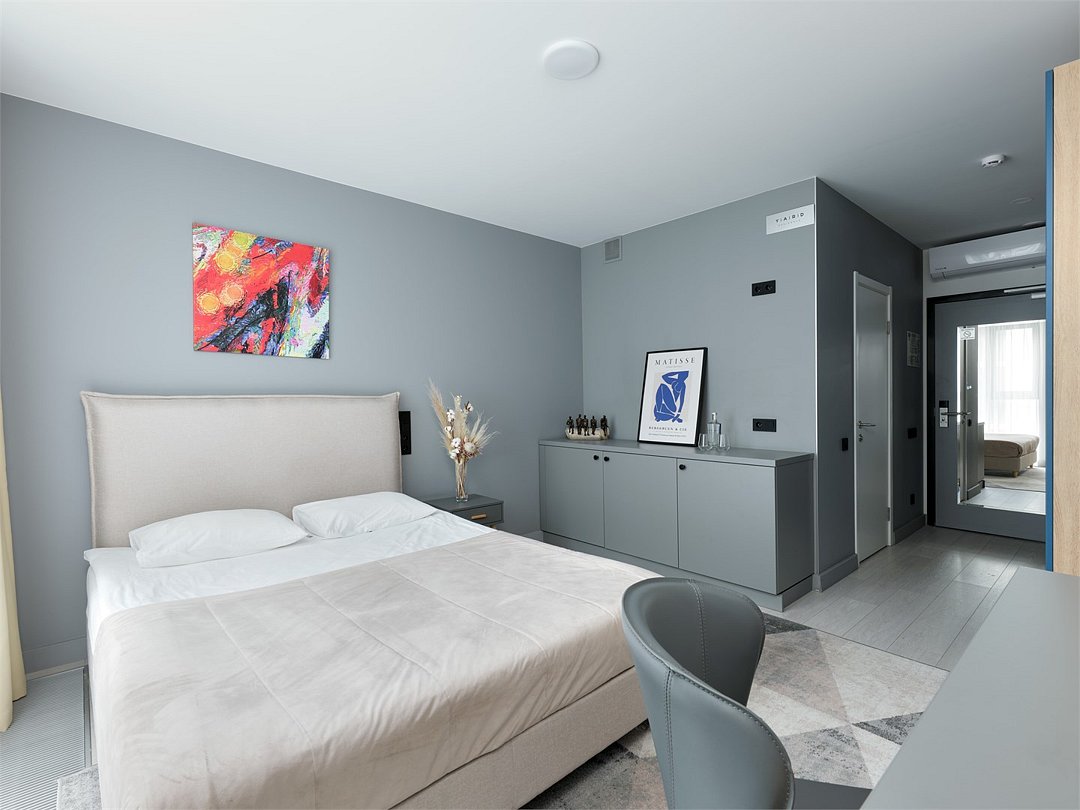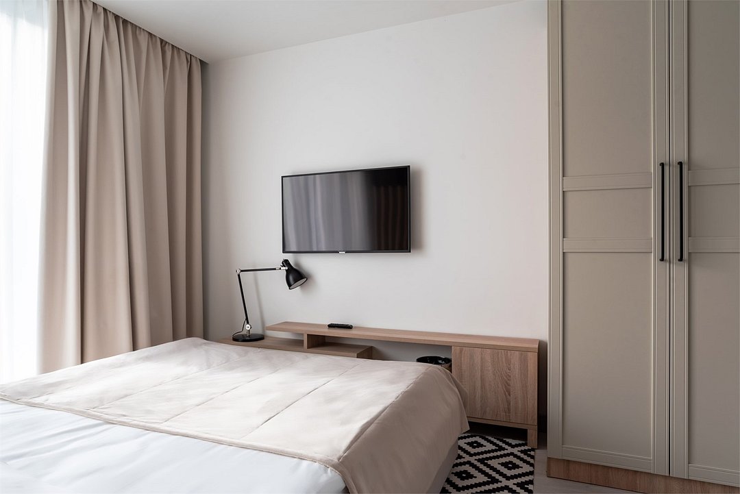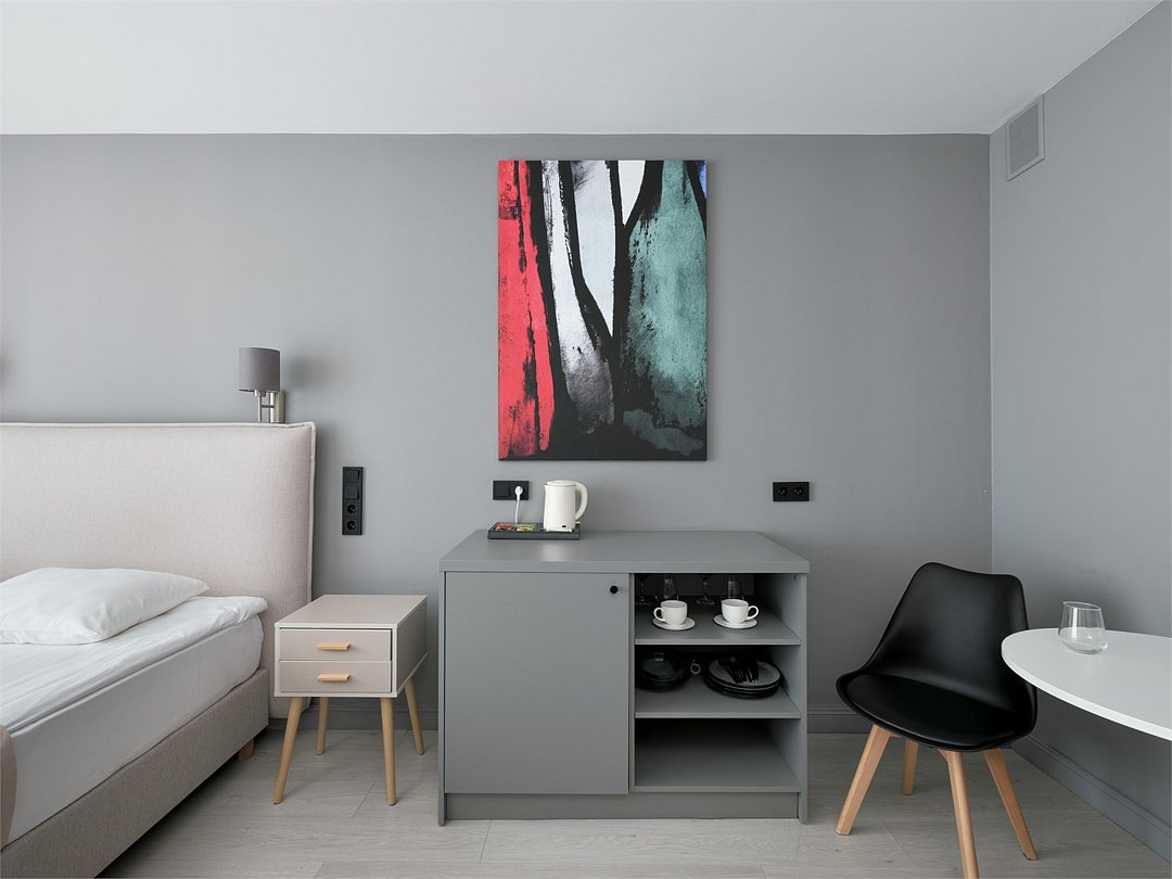Это идеальное пространство для комфортного проживания, где уют и удобство сочетаются без необходимости в полноценной кухне. В каждом номере удобная двуспальная кровать с высоким ортопедическим матрасом, обеспечивающим расслабляющий и восстанавливающий сон. Каждая деталь отвечает требованиям современного путешественника: фен для ухода за волосами, холодильник для хранения закусок и напитков, гладильные принадлежности для безупречного внешнего вида, а также чайная станция с необходимым набором посуды для наслаждения теплым напитком в любое время. Создайте для себя атмосферу уюта и домашнего комфорта в современном и компактном номере.Услуги и удобства