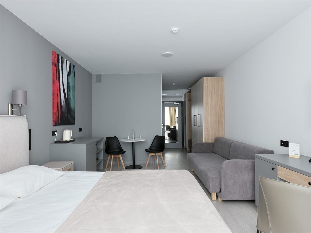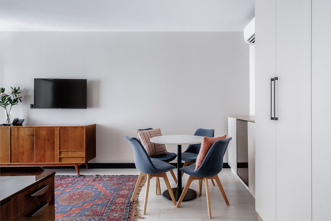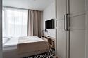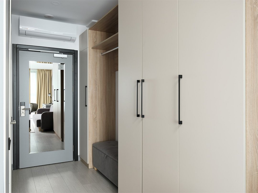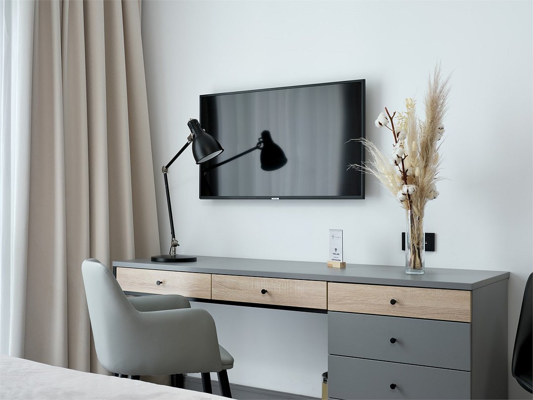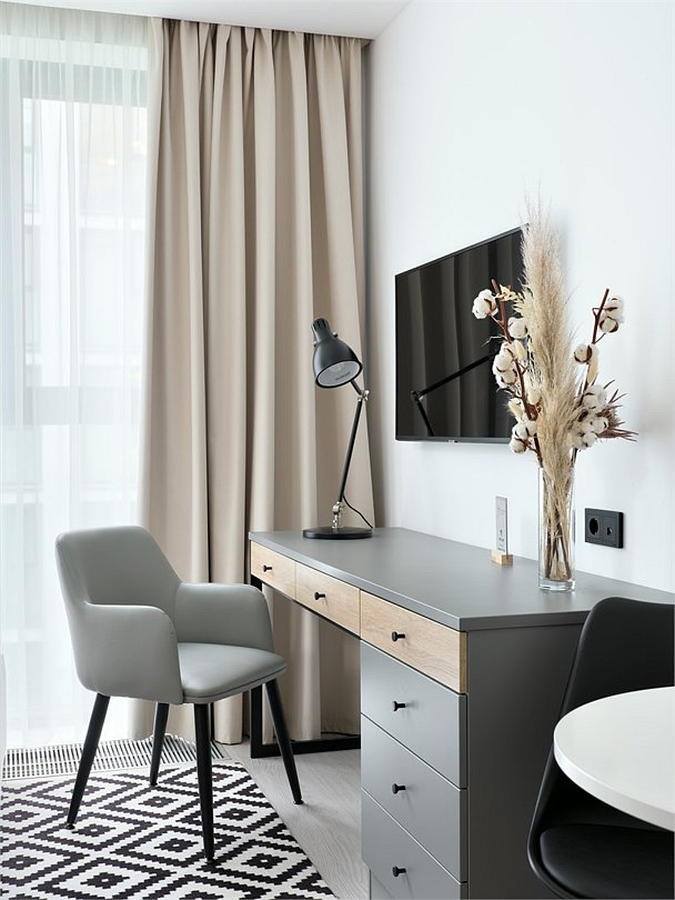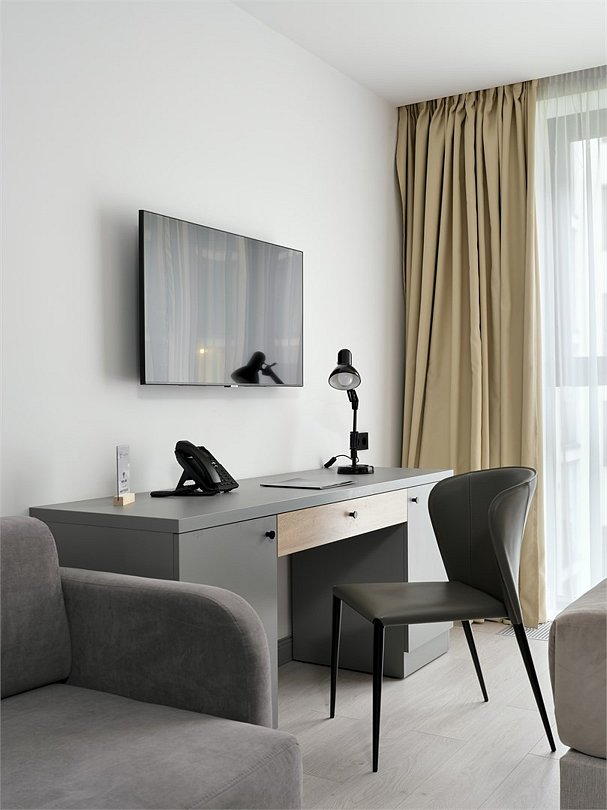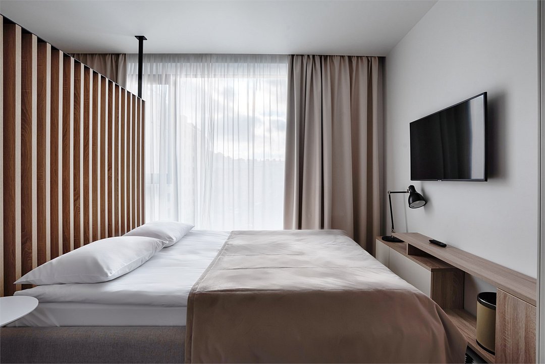 Это идеальное пространство для комфортного проживания, где уют и удобство сочетаются без необходимости в полноценной кухне. В каждом номере удобная двуспальная кровать с высоким ортопедическим матрасом, обеспечивающим расслабляющий и восстанавливающий сон. Каждая деталь отвечает требованиям современного путешественника: фен для ухода за волосами, холодильник для хранения закусок и напитков, гладильные принадлежности для безупречного внешнего вида, а также чайная станция с необходимым набором посуды для наслаждения теплым напитком в любое время. Создайте для себя атмосферу уюта и домашнего комфорта в современном и компактном номере.Услуги и удобства