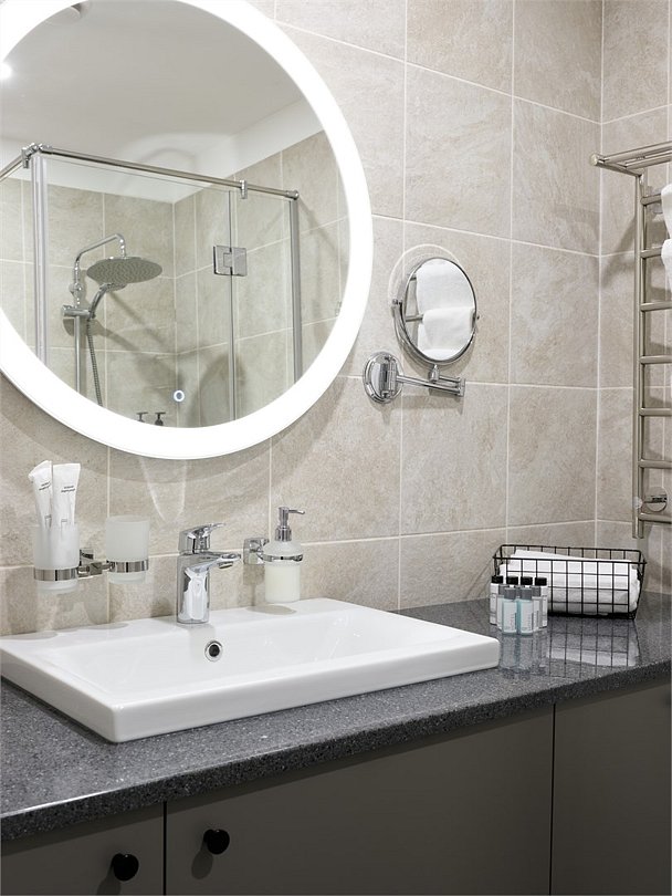 Wi-Fi, светильник, фен, система безопасности, электронные замки, утюг, душевая кабина, халаты, банные полотенца, тапочки, двуспальная кровать, гладильная доска, шкаф для одежды, вешалки, багажная тумба, зеркало, чайный набор, набор посуды, обслуживание номеров, сейф, чайник, унитаз, раковина, косметическое зеркало, питьевая вода, отопление, центральное кондиционирование, вид во двор, столовые приборы, стул, стол, тумба, туалетный столик, туалетные средства, цифровое тв, мини-холодильник, номер для некурящих, гигиенический душ, чайная станция, уборка номера, вешалки-плечики, бутилированная вода, комната для переговоров (за дополнительную плату), можно с питомцамиВ гостиничном номере