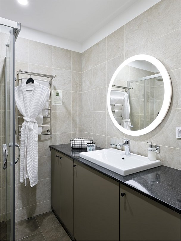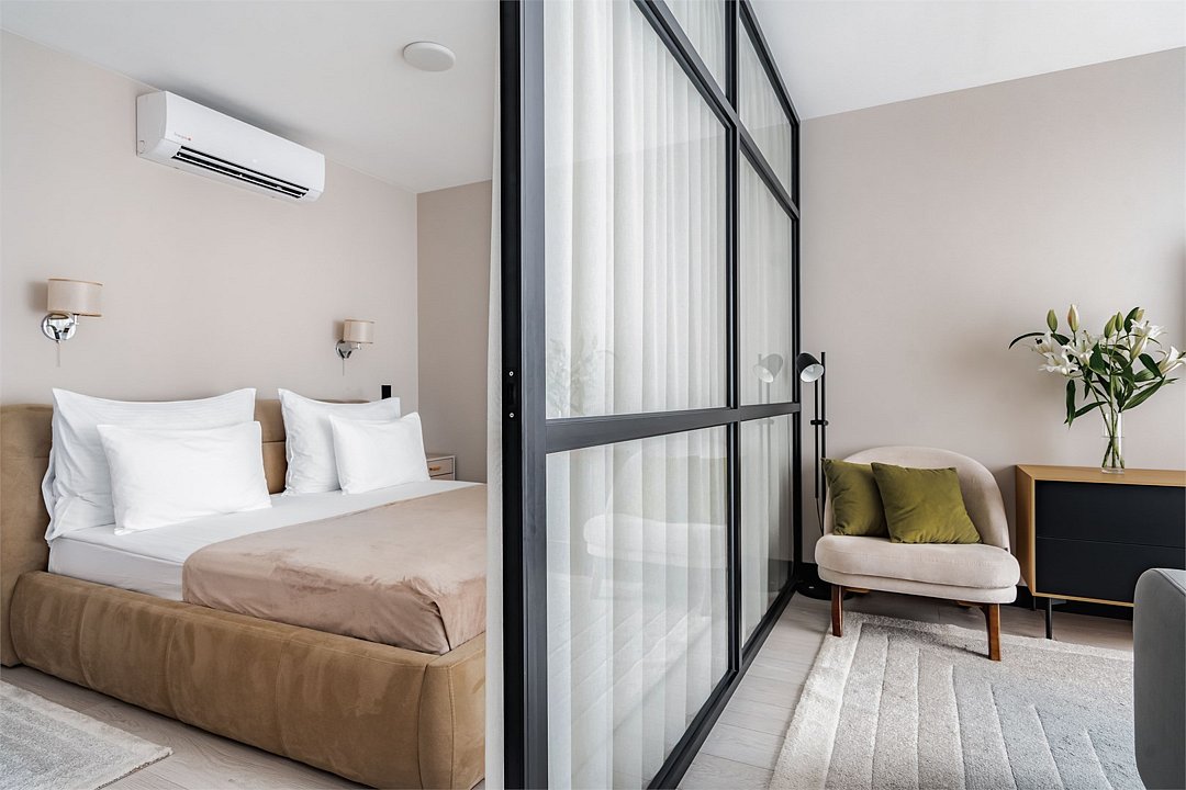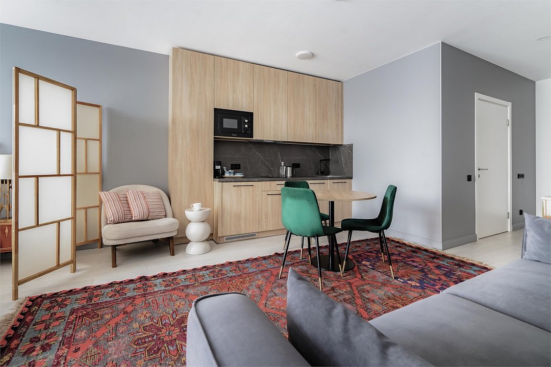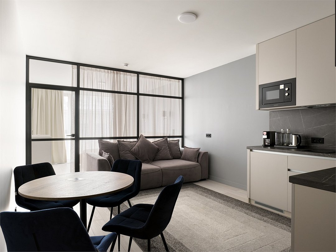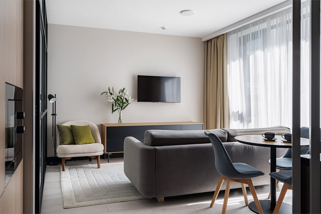 Каждый номер оформлен в светлой, уютной цветовой гамме, создавая атмосферу тепла и уюта. Просторная спальная зона предлагает возможность выбрать между удобной двуспальной кроватью или двумя отдельными кроватями, обеспечивая комфортный отдых. Рабочая зона идеально подходит для восстановления продуктивности, а кухонная часть порадует современным оборудованием: варочной панелью, холодильником и микроволновой печью. Для Вашего удобства здесь также расположены посудомоечная и стиральная машины, а чайная станция с набором посуды позволит наслаждаться горячими напитками в любое время. Отдельная обеденная зона, оформленная стильным столом и стульями, предлагает уютное место для ужинов и общения. Каждый номер данной категории дополнен стиральной машиной и гладильными принадлежностями.Услуги и удобства