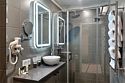 телевизор, Wi-Fi, кондиционер, светильник, фен, электронные замки, плита для приготовления пищи, кофемашина, микроволновая печь, утюг, ванная комната, душевая кабина, халаты, банные полотенца, тапочки, гигиенические средства, косметические средства, двуспальная кровать, гладильная доска, ортопедический матрас, диван, стулья, шкаф для одежды, вешалки, зеркало, кухня, набор посуды, сейф, посудомоечная машина, стиральная машина, чайник, косметическое зеркало, питьевая вода, обеденная зона, душ, вид на город, вид во двор, окна выходят в атриум отеля, кухонная посуда, стаканы, кухонная утварь, столовые приборы, стол, туалетные средства, панорамные окна, диван-кровать, раскладной диван, мини-холодильник, гостиничная парфюмерия, рабочий стол, гигиенический душ, чайная станция, уборка номера, набор для приготовления чая и кофе, туалетные принадлежности премиум-класса, вешалки-плечики, бутилированная вода, мыло, затемняющая штора, зеркало в полный рост, косметические принадлежности премиум-класса, можно с питомцами, лежанка, мискаВ гостиничном номере