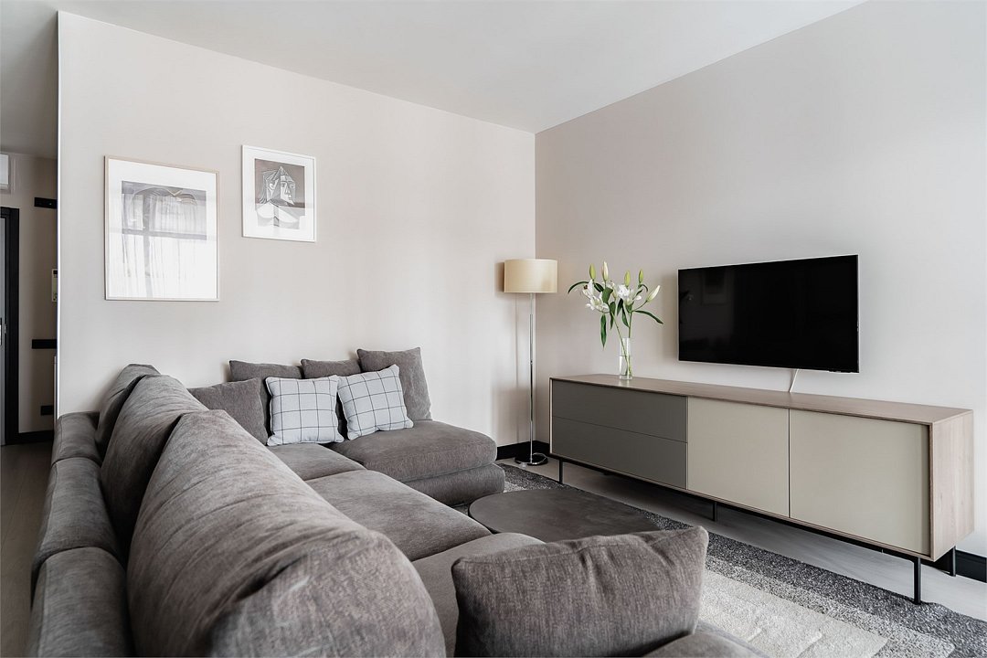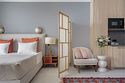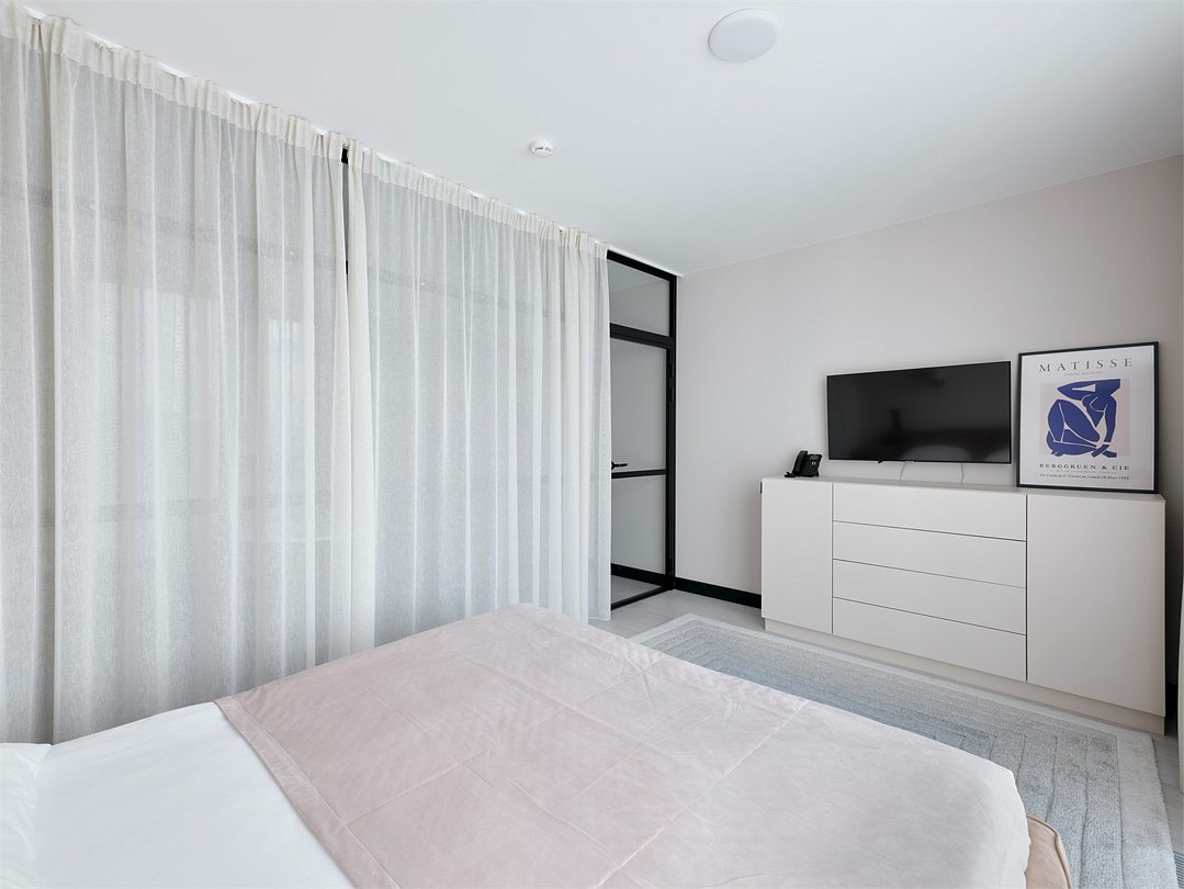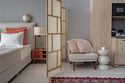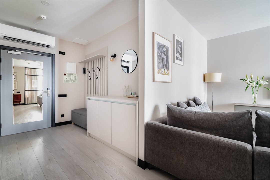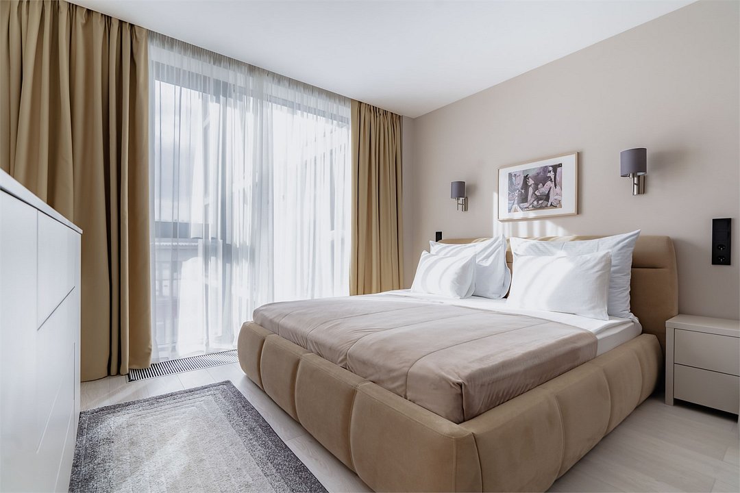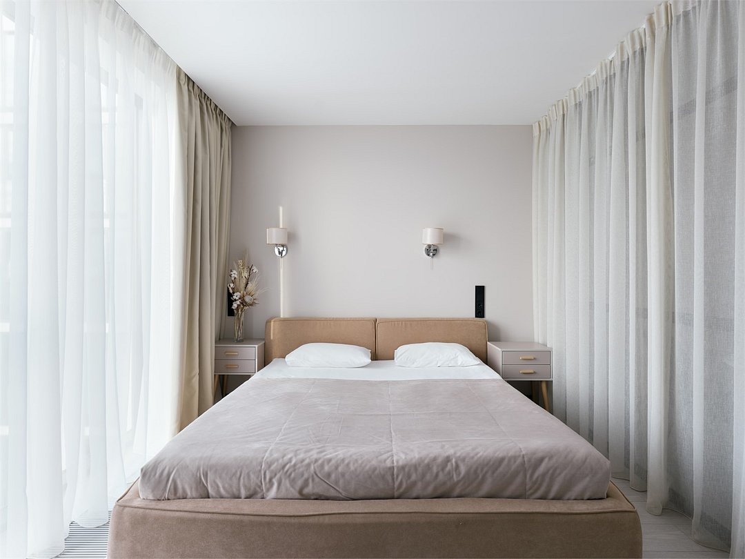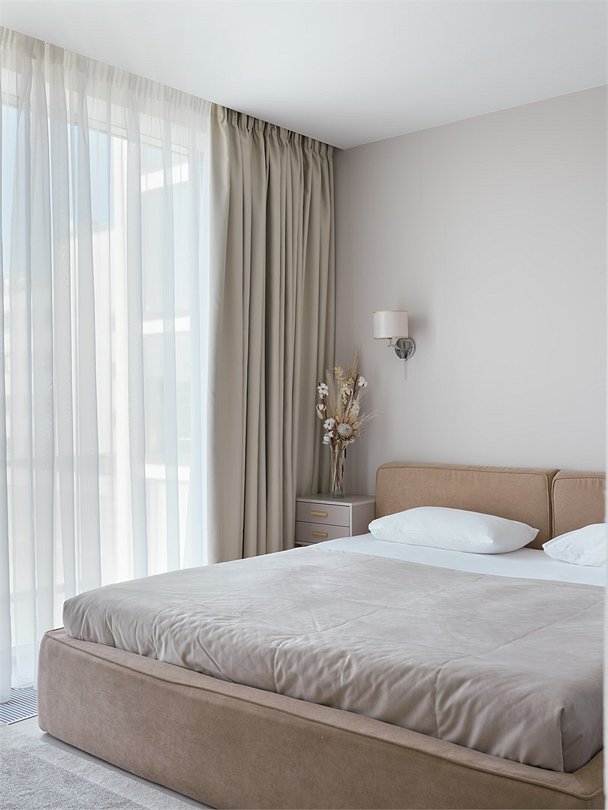 Это самый просторный номер в нашем апарт-отеле, идеально подходящий для семейного отдыха или большой компании. Просторное пространство разделено на несколько уютных зон: главная спальня с роскошной двуспальной кроватью, гостевая — с двумя раздельными кроватями, а также светлая гостиная с мягким, уютным диваном. Входная зона украшена мягким пуфом и современной системой хранения, создавая ощущение домашнего уюта. Стильные картины на стенах добавляют нотки эстетики и искусства, радуя любителей красоты. Дизайн номеров разработан одним из ведущих архитектурных бюро России, что гарантирует гармонию и изысканность каждого элемента интерьера.Услуги и удобства