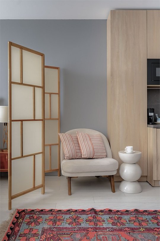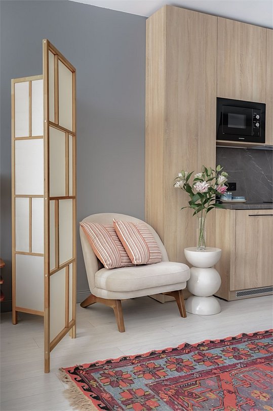 Стильный и уютный номер, идеально подходящий для проживания 1-2 гостей. Пространство оснащено всеми необходимыми удобствами, чтобы обеспечить максимальный комфорт во время вашего отдыха. В номере мини-кухня, оборудованная микроволновой печью, варочной панелью и мини-холодильником — каждый элемент здесь продуман для Вашего удобства. Особую атмосферу придает современная перегородка, искусно разделяющая зону для сна и обеденную зону, создавая таким образом уединение и гармонию. Этот номер станет настоящим уголком уюта и спокойствия, где легко расслабиться и наслаждаться времяпрепровождением вдвоем.Услуги и удобства