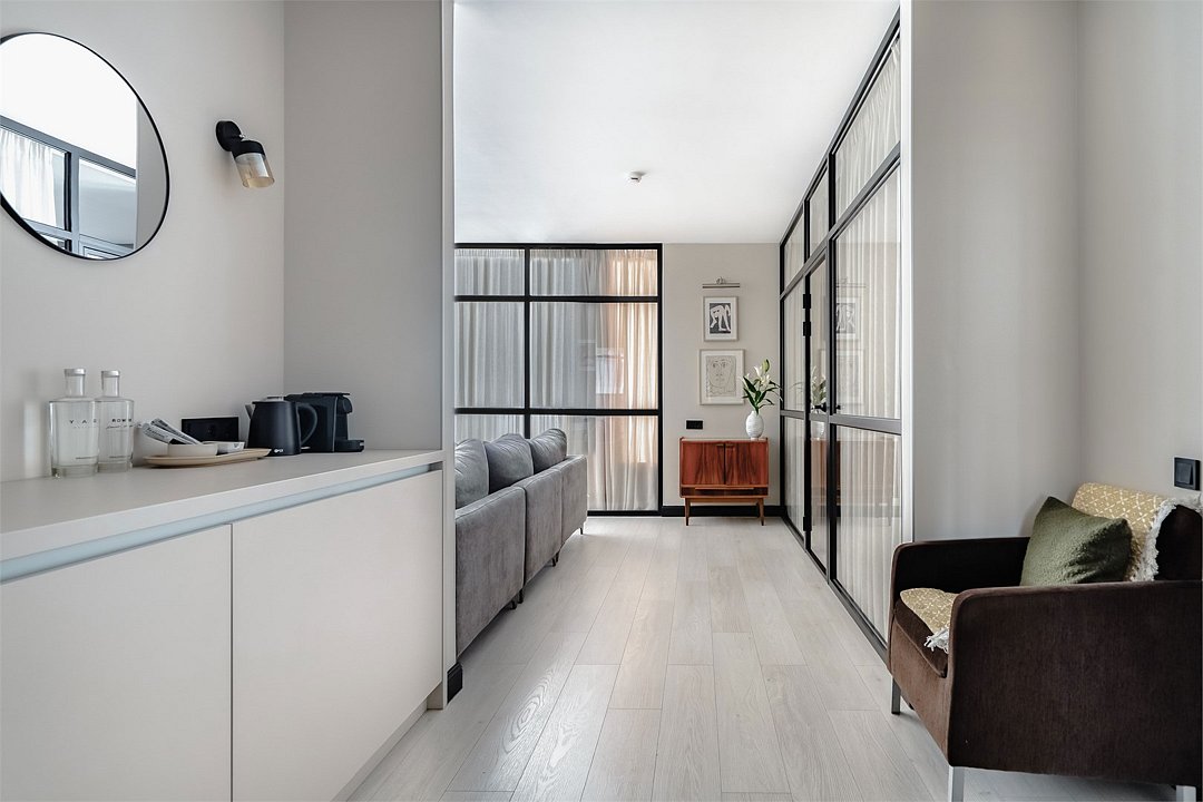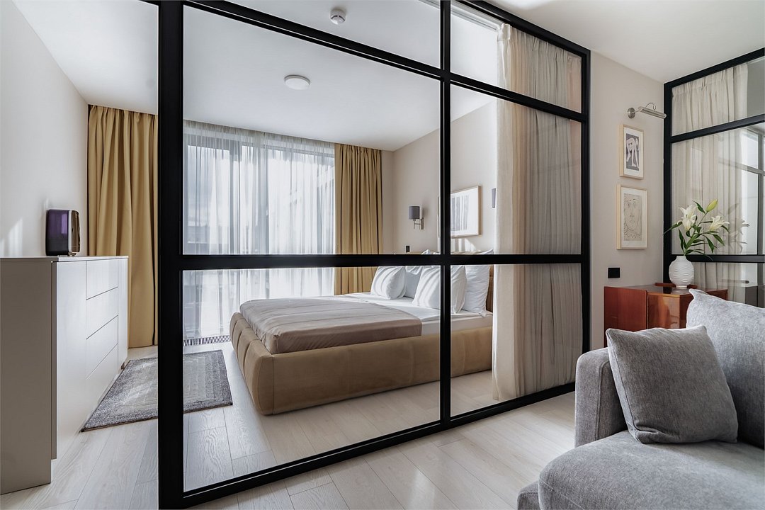 Стильный двухкомнатный номер предлагает гармоничное сочетание уюта и современного дизайна. Просторная кухня-гостиная с элегантным диваном приглашает к расслаблению, а обеденная зона, оформленная с изяществом, станет идеальным местом для совместных ужинов и встреч с друзьями. В спальне роскошная двуспальная кровать размера king-size. Некоторые номера дополнены инновативной стеной из прочного стекла, которую при желании можно закрыть плотными шторами, создавая атмосферу уединения и спокойствия. Каждый элемент дизайна номера был тщательно продуман и разработан одним из ведущих архитектурных бюро России, что делает пребывание незабываемым и дарит ощущение эксклюзивности и стиля.Услуги и удобства