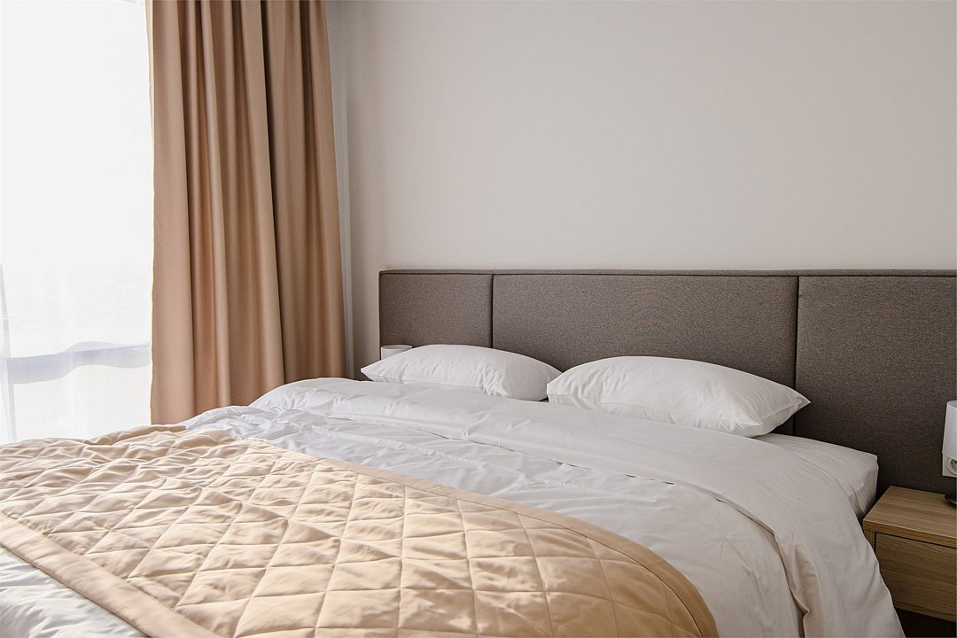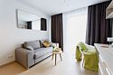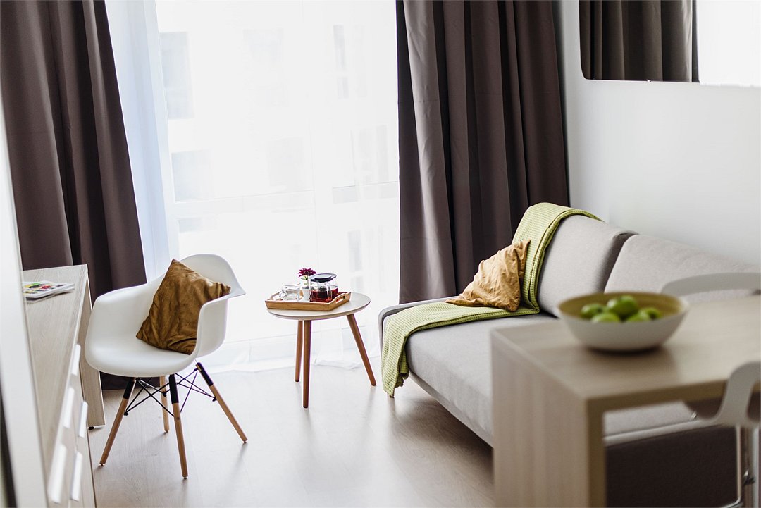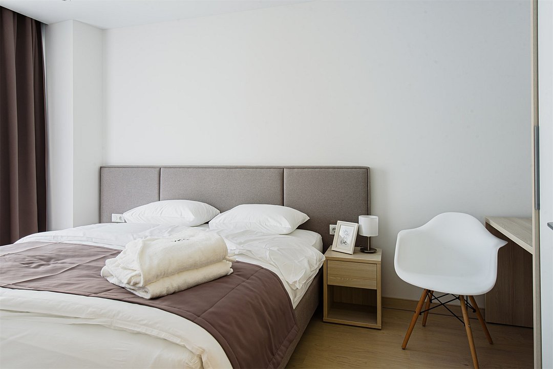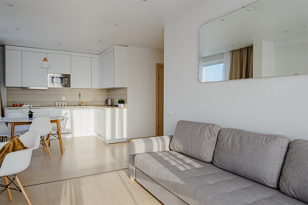 Апартамент идеально подойдёт для семьи с ребёнком, имеет отдельную спальную комнату и кухню-гостиную с диваном. Просим обратить внимание, что диван маленький и не раскладывается. Апартамент оснащен всей необходимой техникой и мебелью для комфортного проживания. Обращаем Ваше внимание, что халаты предоставляются бесплатно по запросу. По запросу предоставляется детская кровать для ребенка до 3 лет. Услуга бесплатная. В качестве дополнительного места предоставляется еврораскладушка. Услуга платная, предоставляется при наличии возможности. При выборе размещения ребенка без отдельного спального места постельное белье, полотенца, косметические средства дополнительно не предоставляются.Услуги и удобства