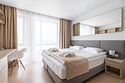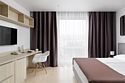 Апартаменты категории "Супериор" площадью 31-35 кв.м. Данная категория апартамента идеально подходит для размещения семьи с детьми. Для комфорта гостей в апартаменте одна большая кровать, рабочая зона с письменным столом, зона отдыха, панорамные окна. Обращаем Ваше внимание, что халаты предоставляются бесплатно по запросу. По запросу предоставляется детская кровать для ребенка до 3 лет. Услуга предоставляется бесплатно. В качестве дополнительного места предоставляется еврораскладушка. Услуга платная, предоставляет по запросу. Услуга платная. При выборе размещения ребенка без отдельного спального места предоставляются только косметические средства и полотенца.Услуги и удобства