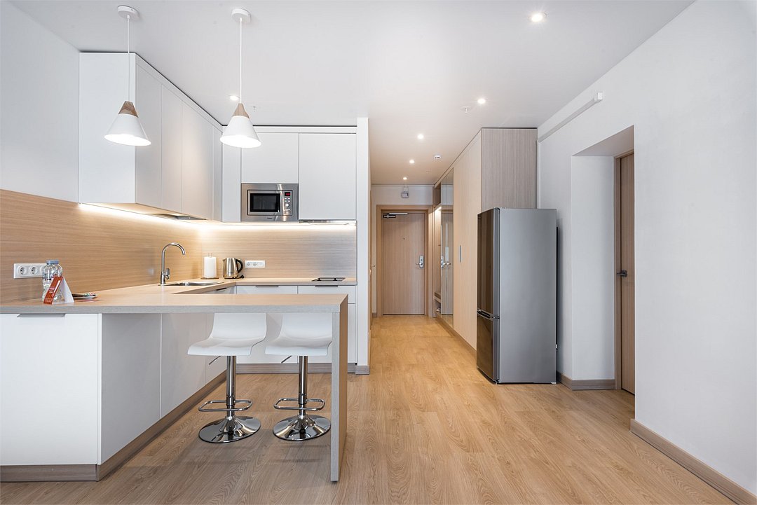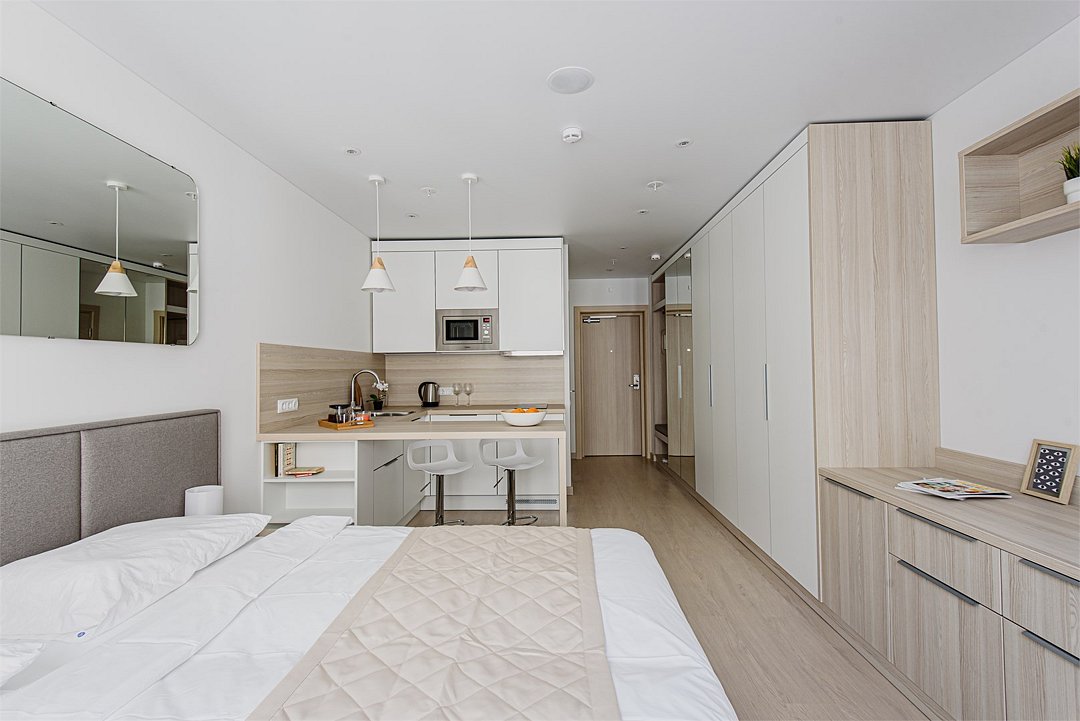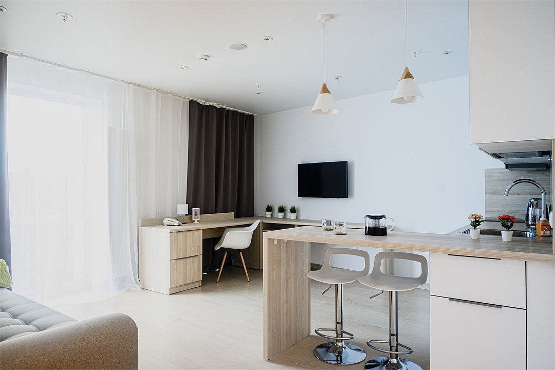 кабельное телевидение, Wi-Fi, светильник, настольные лампы, фен, система безопасности, электронные замки, плита для приготовления пищи, микроволновая печь, утюг, обогреватель, ванная комната, банные полотенца, гигиенические средства, две односпальные или большая двуспальная кровать, гладильная доска, стулья, шкаф для одежды, вешалки, письменный стол, барная стойка, зеркало, комод, мебельный гарнитур, кухня, набор посуды, информационная карта, меню, стиральная машина, чайник, унитаз, раковина, косметическое зеркало, обеденная зона, отопление, душ, кресло, ламинат, кухонная посуда, стаканы, кухонная утварь, столовые приборы, тумба, туалетные средства, панорамные окна, сушилка для белья, внутренний телефон, телевизор с плоским экраном, мини-холодильник, шкаф-купе, номер для некурящих, можно с питомцамиВ апартаментах