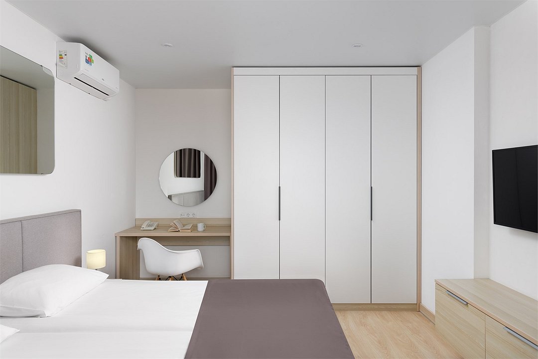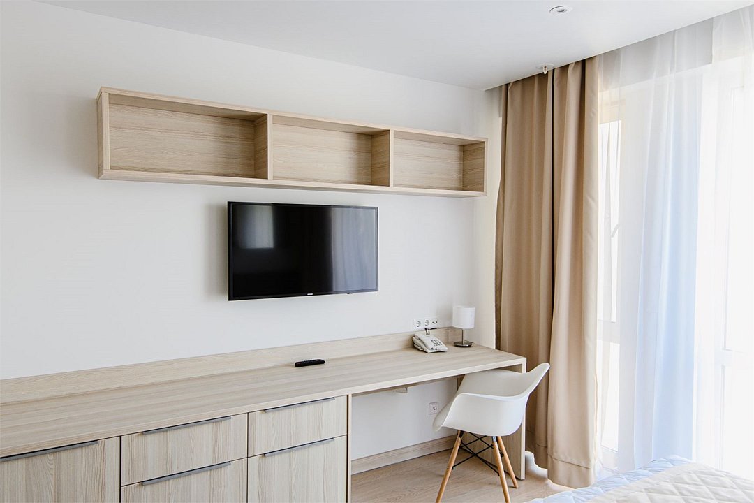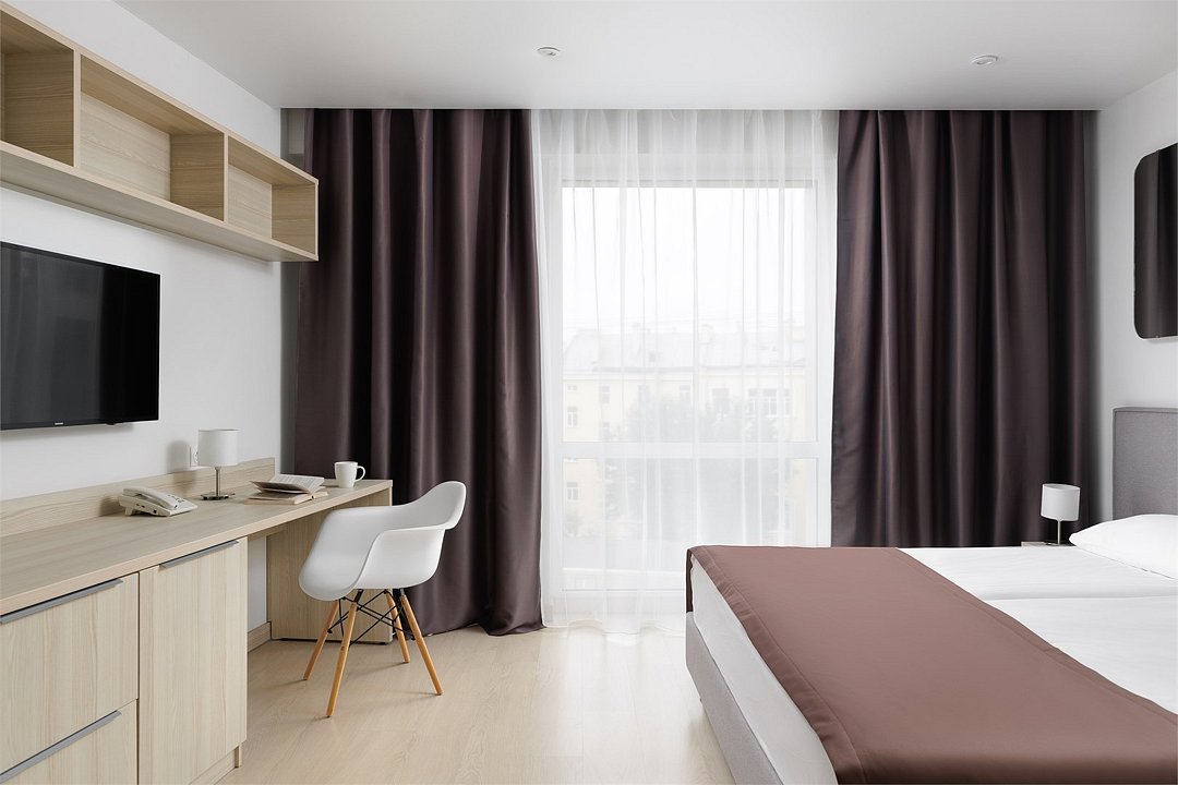 телевизор, Wi-Fi, телефон, холодильник, фен, электронные замки, плита для приготовления пищи, микроволновая печь, утюг, обогреватель, ванная комната, душевая кабина, банные полотенца, тапочки, гигиенические средства, двуспальная кровать, гладильная доска, шкаф для одежды, гардеробная, вешалки, письменный стол, обеденный стол, зеркало, чайный набор, набор посуды, стиральная машина, чайник, унитаз, раковина, питьевая вода, отопление, вид на город, стаканы, столовые приборы, стул, туалетные средства, туалет, внутренний телефон, мини-холодильник, мини-кухня, шкаф-купе, номер для некурящих, рабочий стол, фитнес-зона, можно с питомцамиВ гостиничном номере